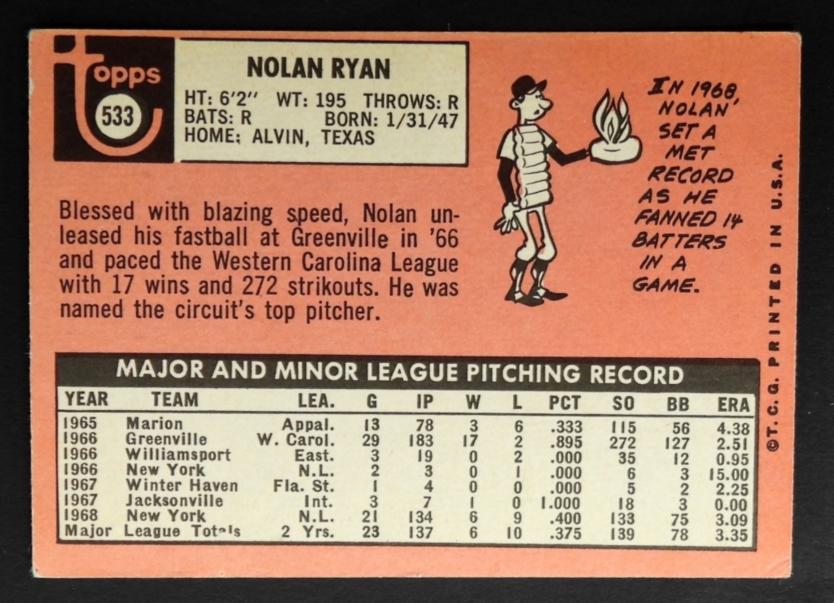 1969 TOPPS #533 NOLAN RYAN VGEX