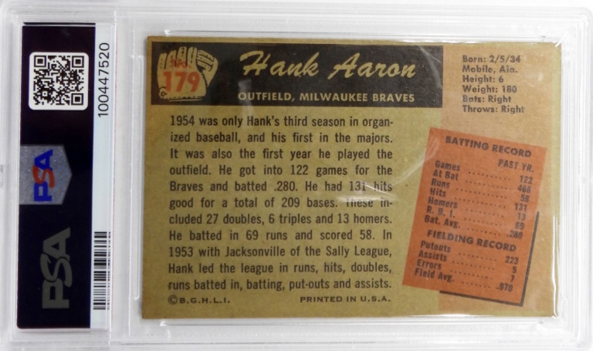 1955 BOWMAN #179 HANK AARON PSA 4 VG-EX