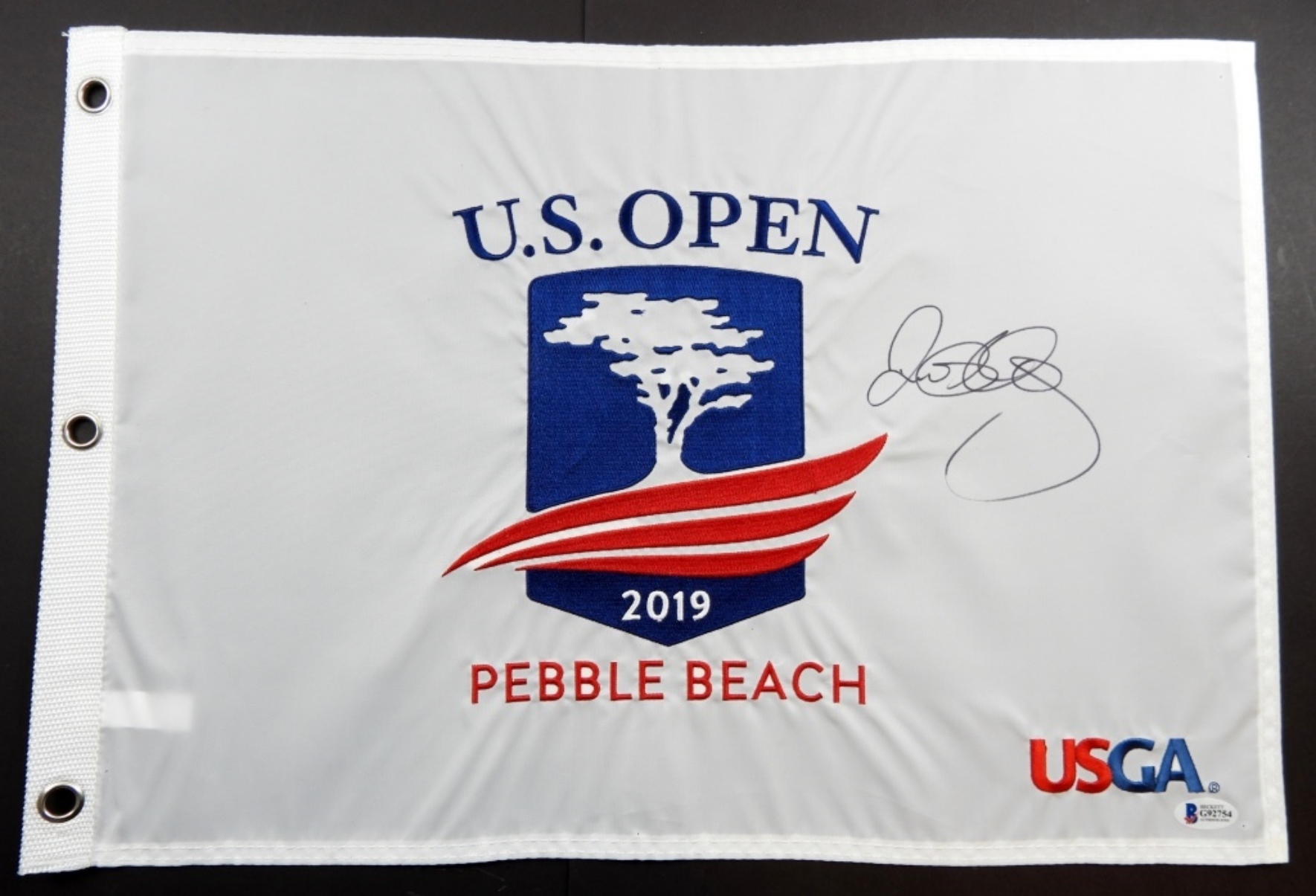 RORY MCILROY AUTOGRAPHE 2019 US OPEN USGA FLAG, PEBBLE BEACH w/COA (BECKETT G92754)