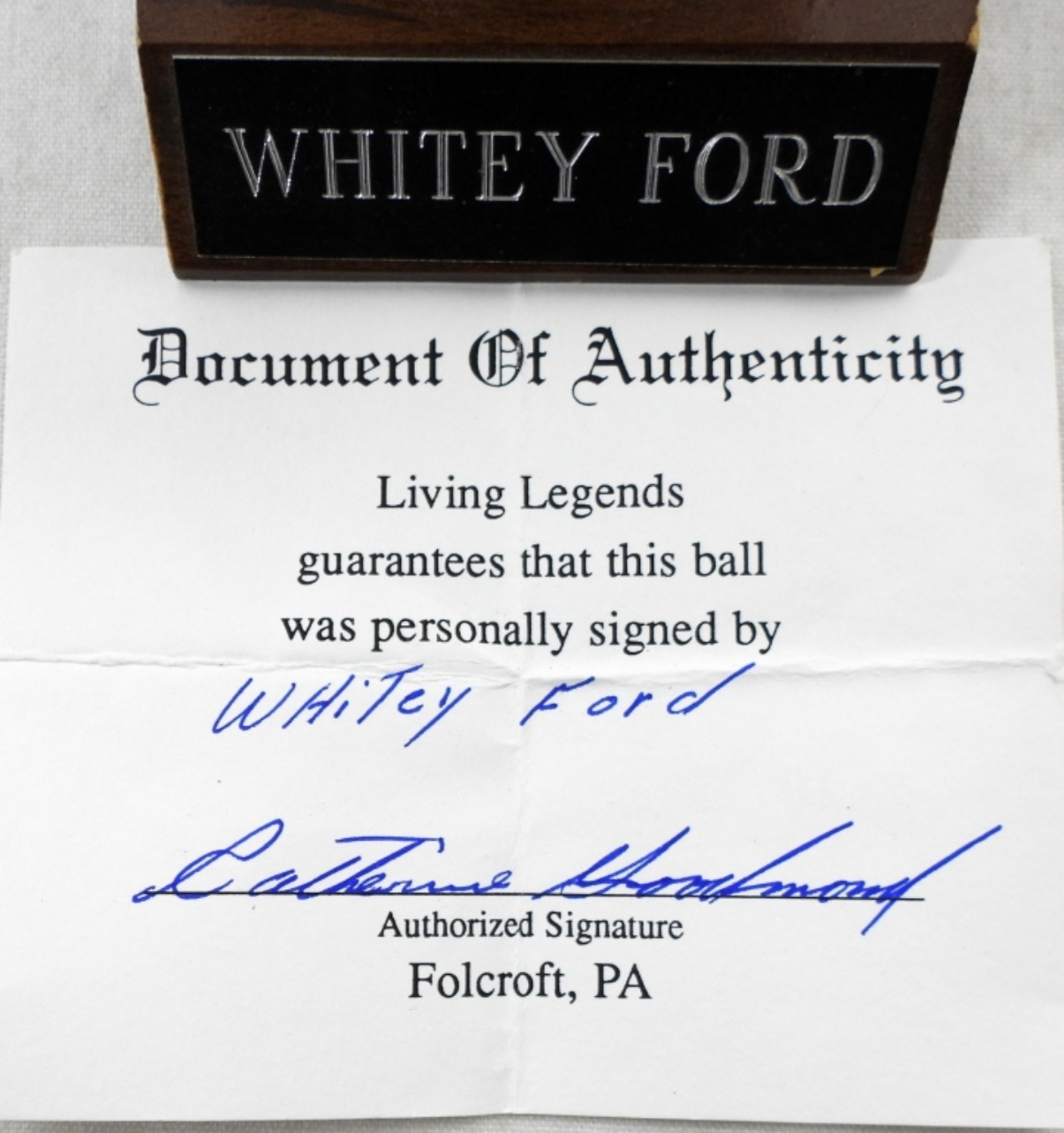 WHITEY FORD AUTOGRAPH RAWLINGS BASEBALL IN CASE w/COA DOCUMENT OF AUTHENTICITY