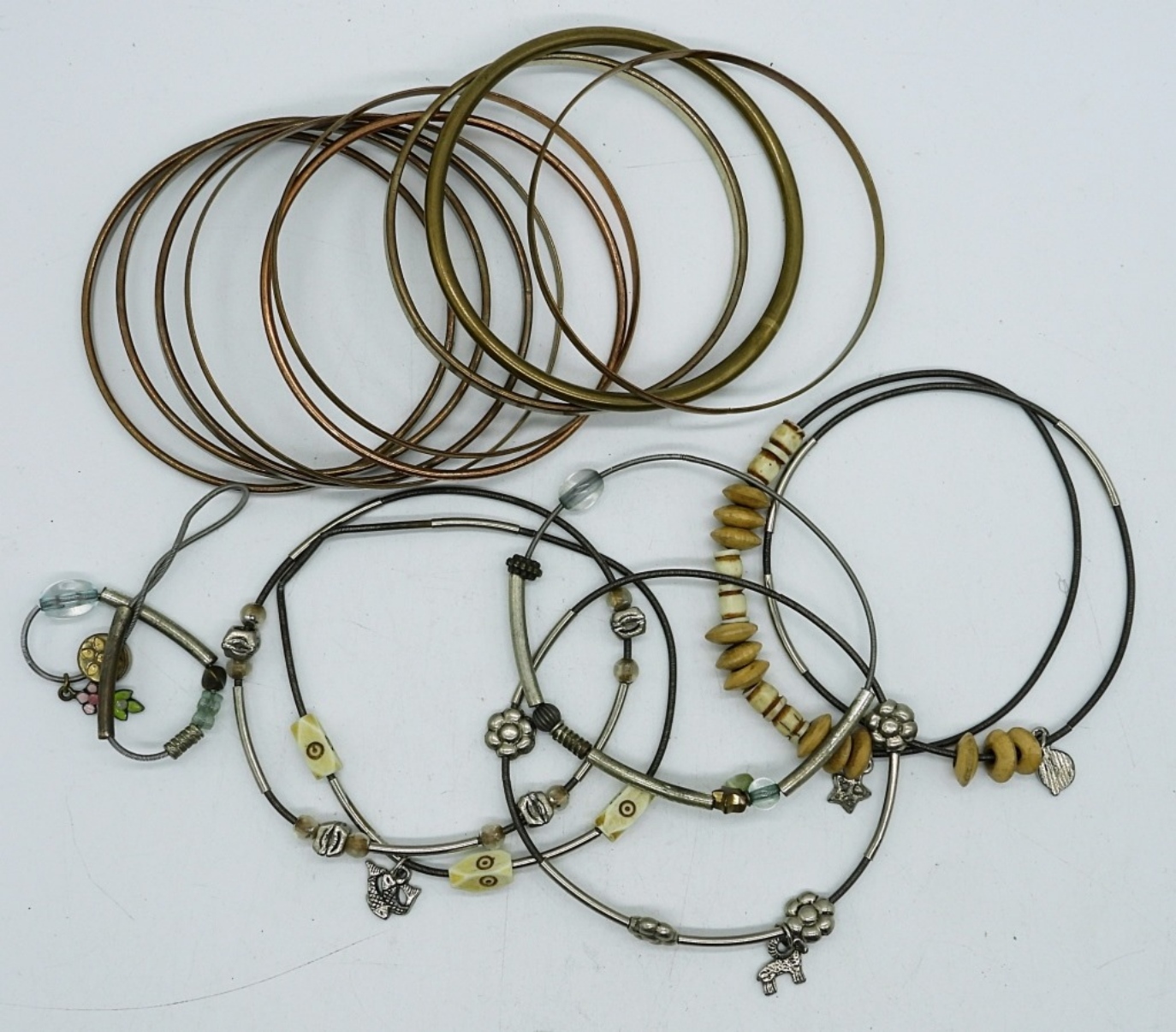 15 BANGLES AND STRETCHY BRACELETS 7-8″.