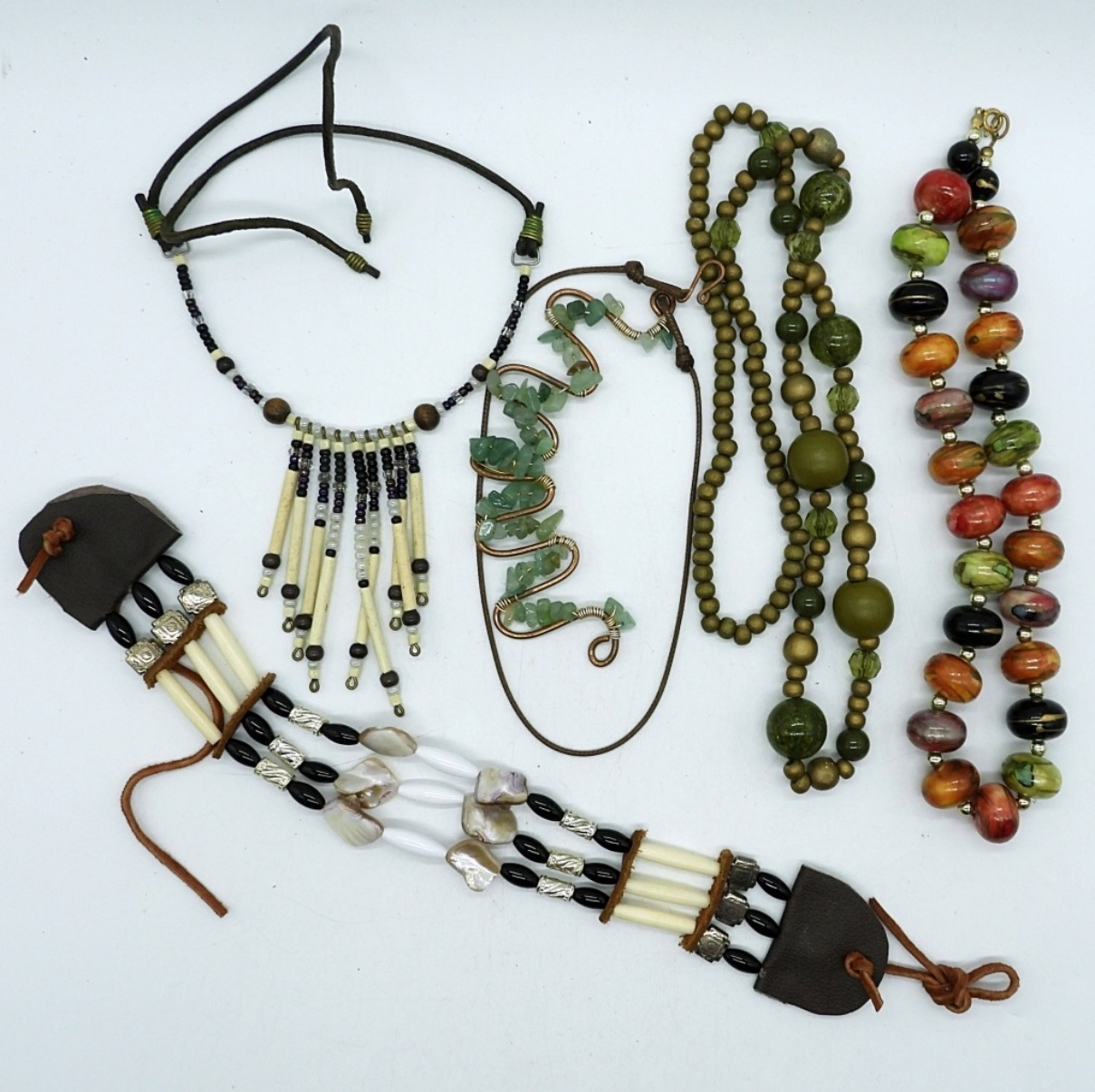 FIVE CHUNKY BEADED NECKLACES 18-28″.
