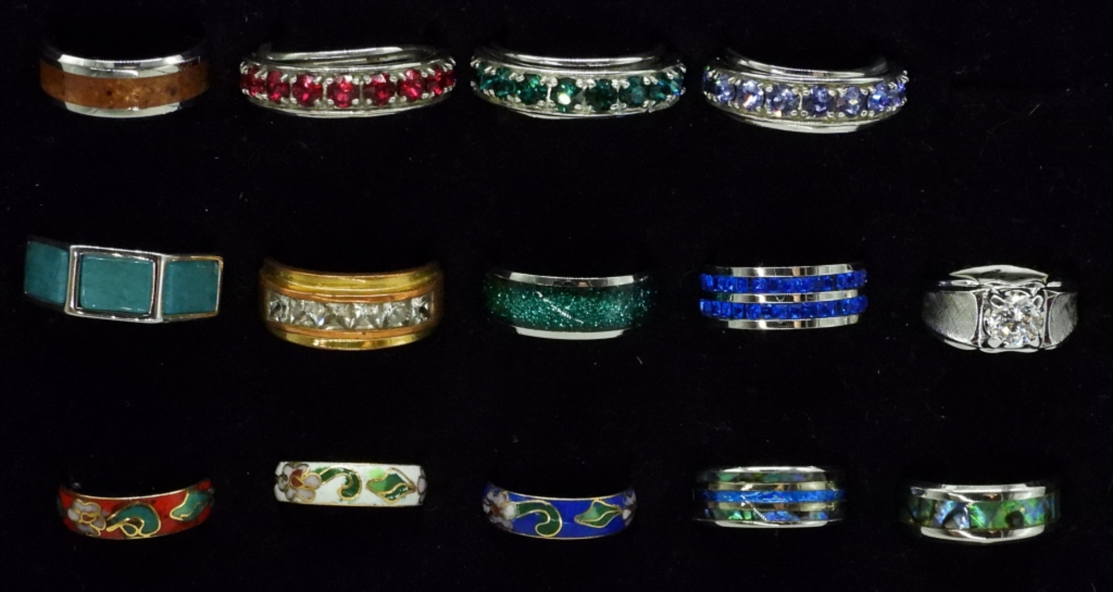 14 MEN’S & WOMEN’S FASHION RINGS, GOLD AND SILVER TONES. SIZES 7-11.