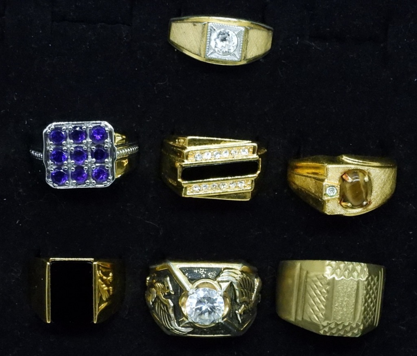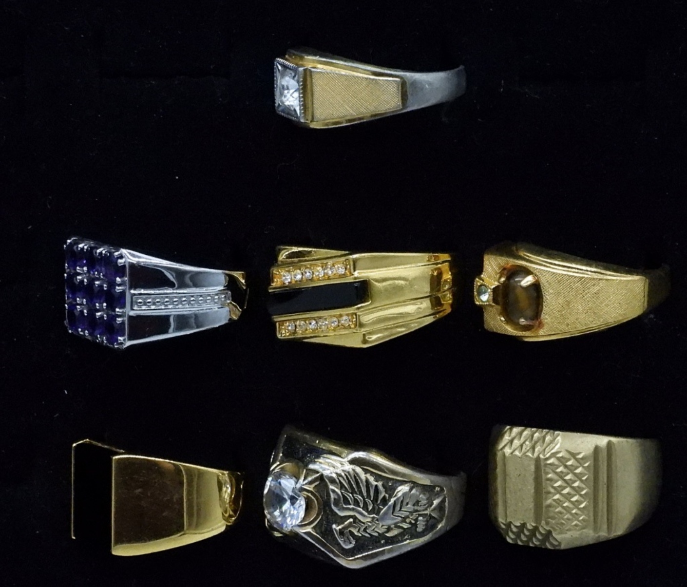 7 MEN’S FASHION RINGS, SIZES 9-13