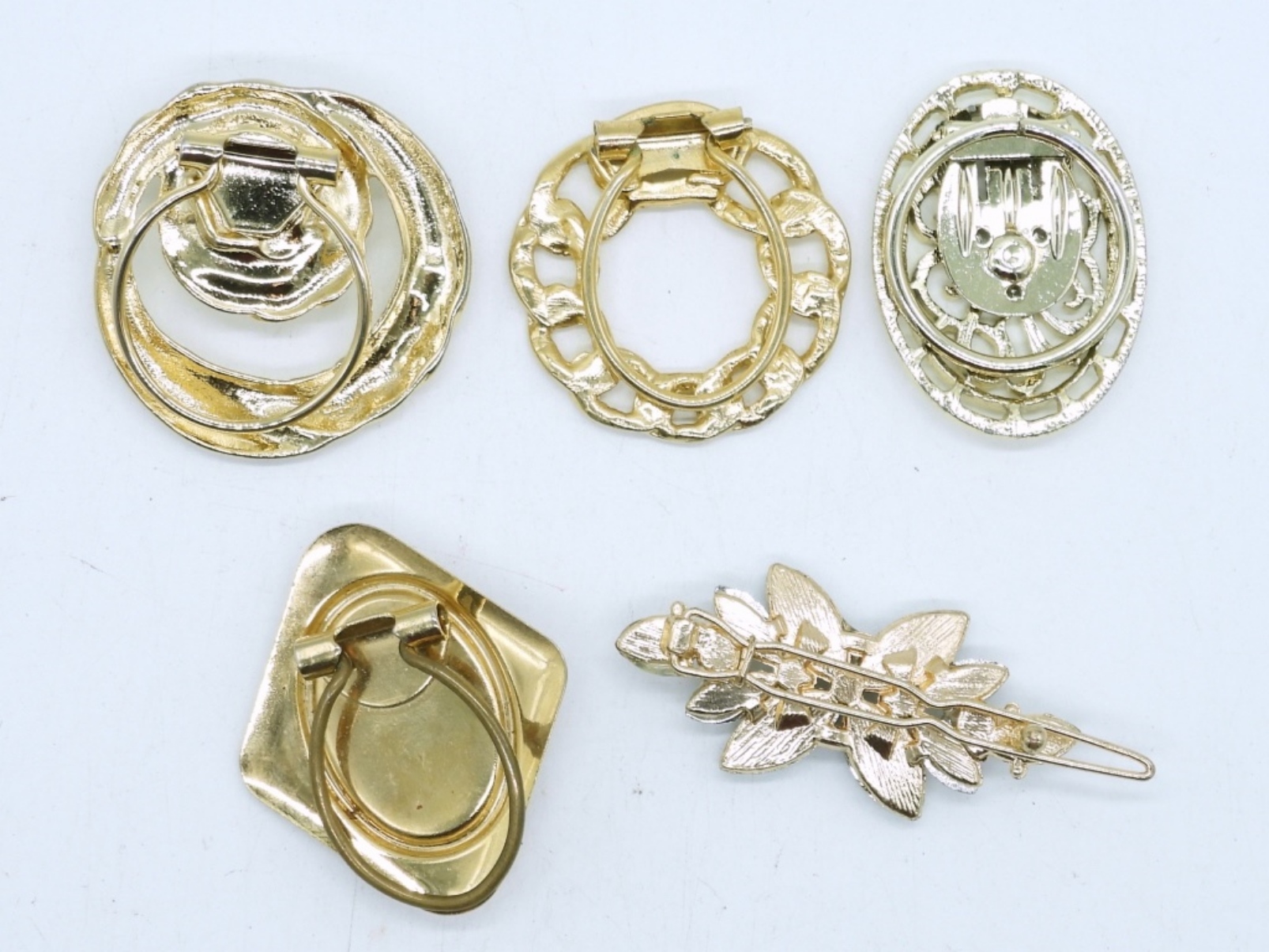 5 GOLD TONE SCARF CLIPS. ONE GOLD TONE HAIR CLIP.