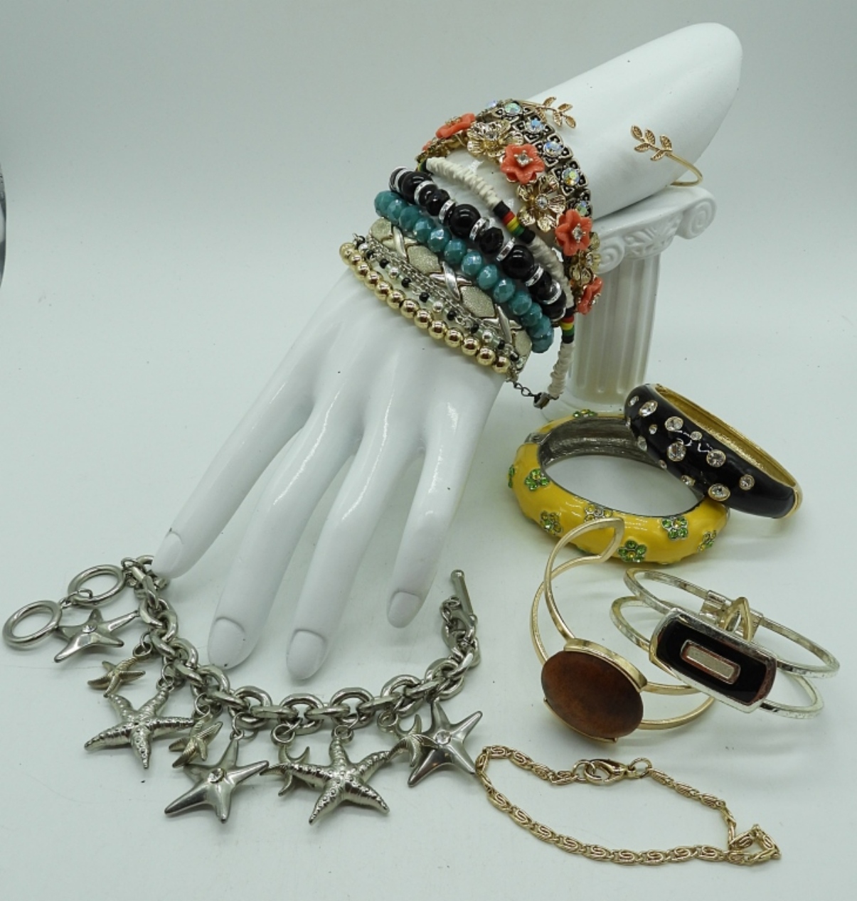 FIFTEEN BRACELETS. BANGLES, STRETCH & MORE. 6-8″.