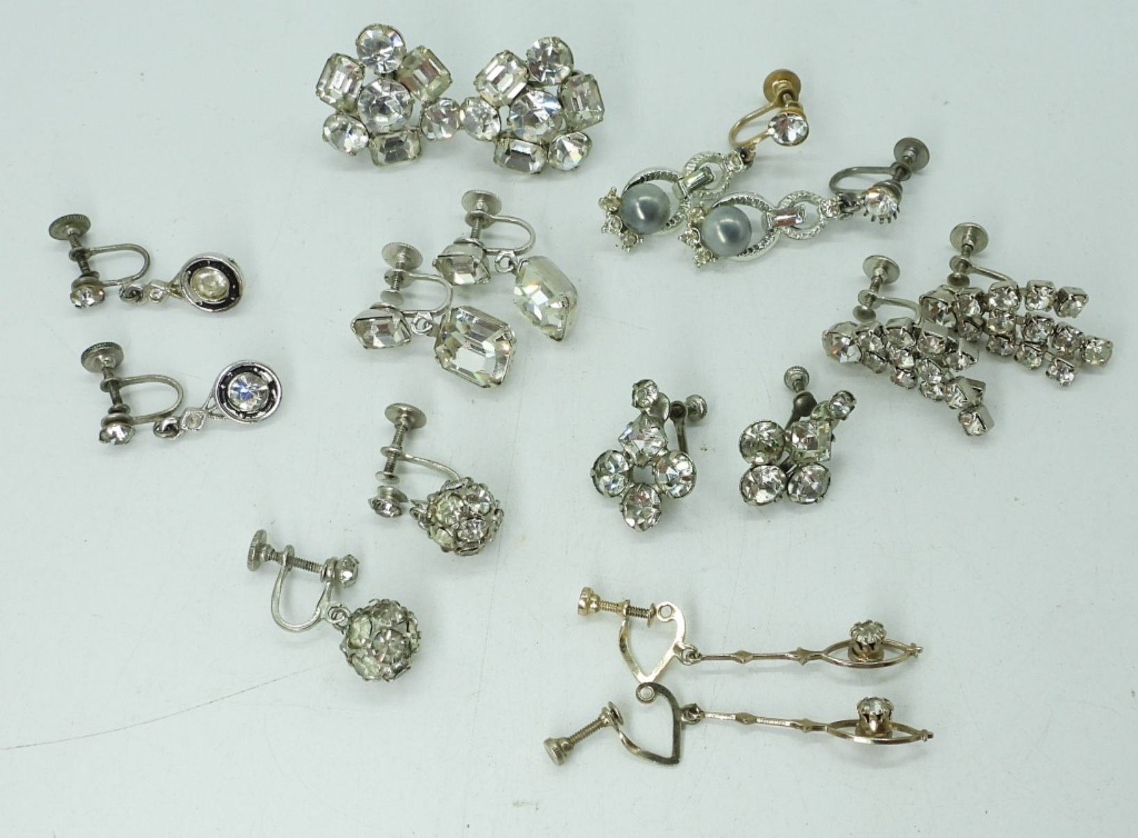 EIGHT PAIR OF VINTAGE RHINESTONE SCREW BACK EARRINGS.