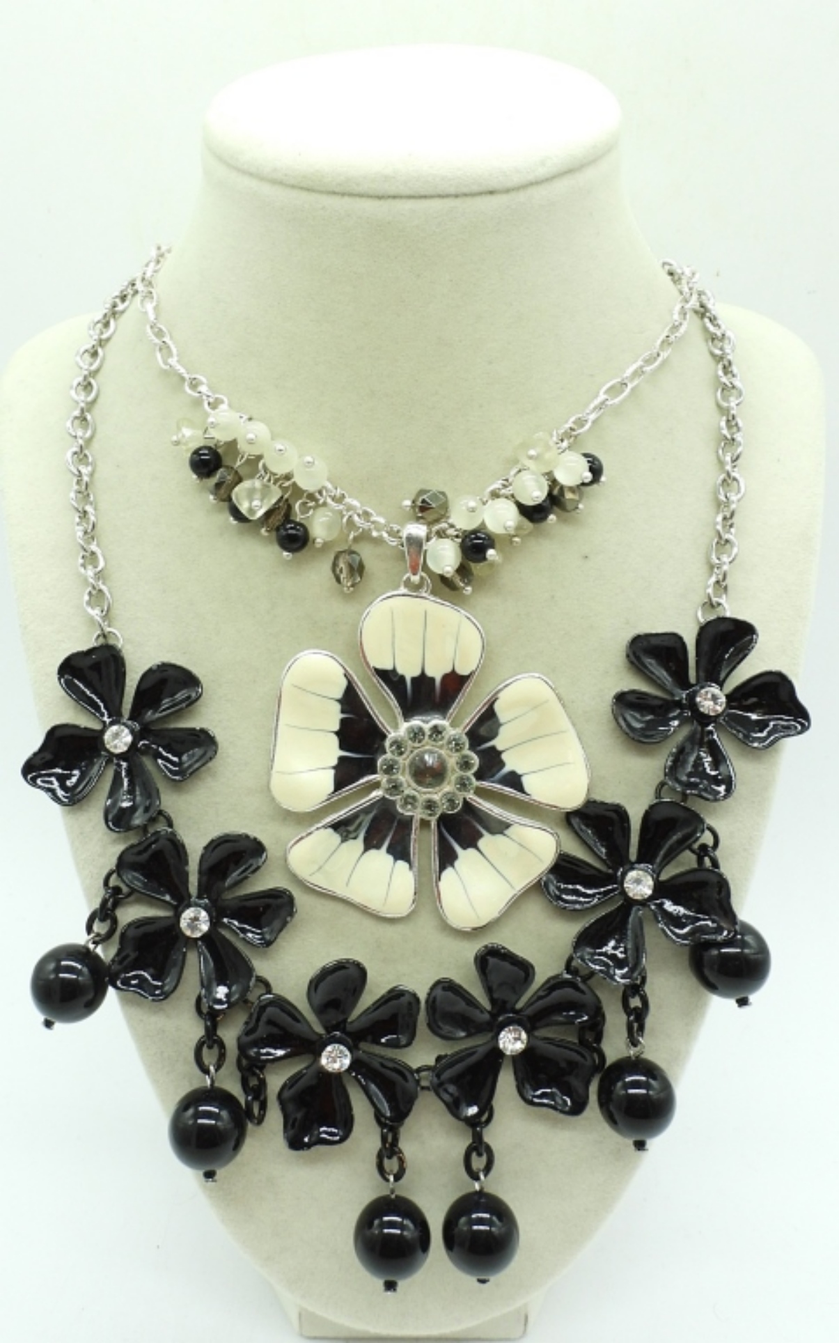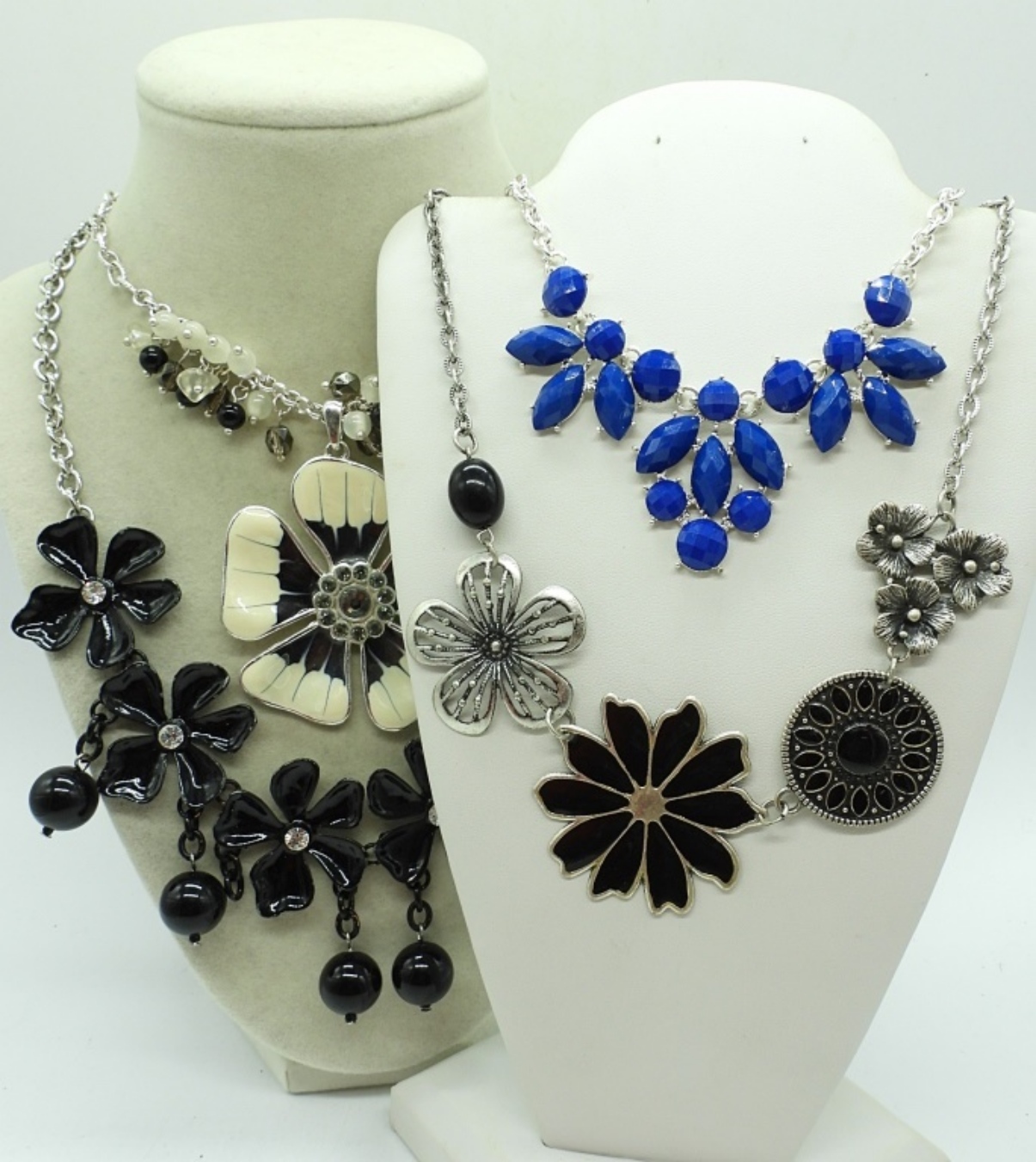 4 VINTAGE FLORAL NECKLACES, 18 & 20 INCHES LONG.