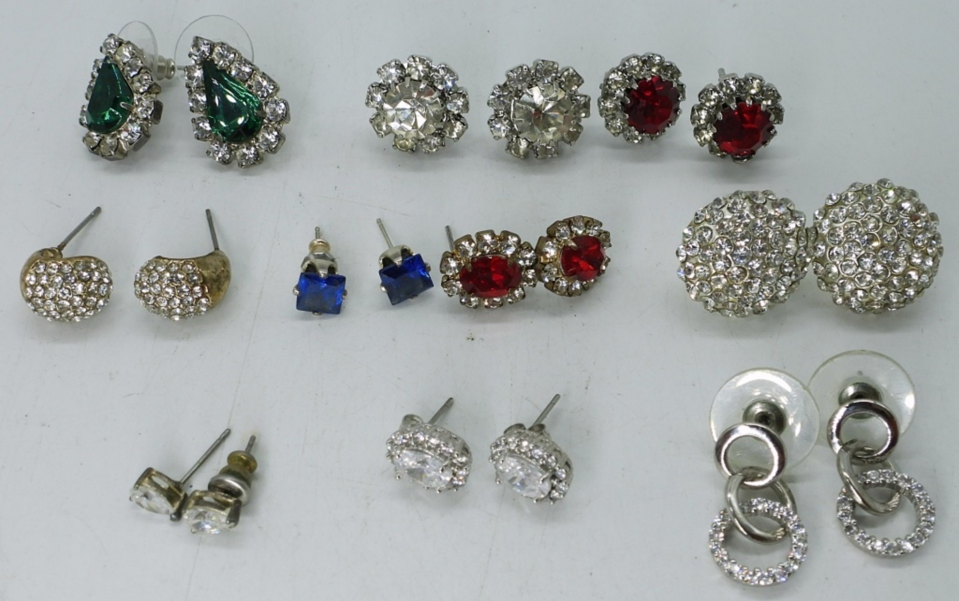 TEN PAIR RHINESTONE PIERCED EARRING STUDS.