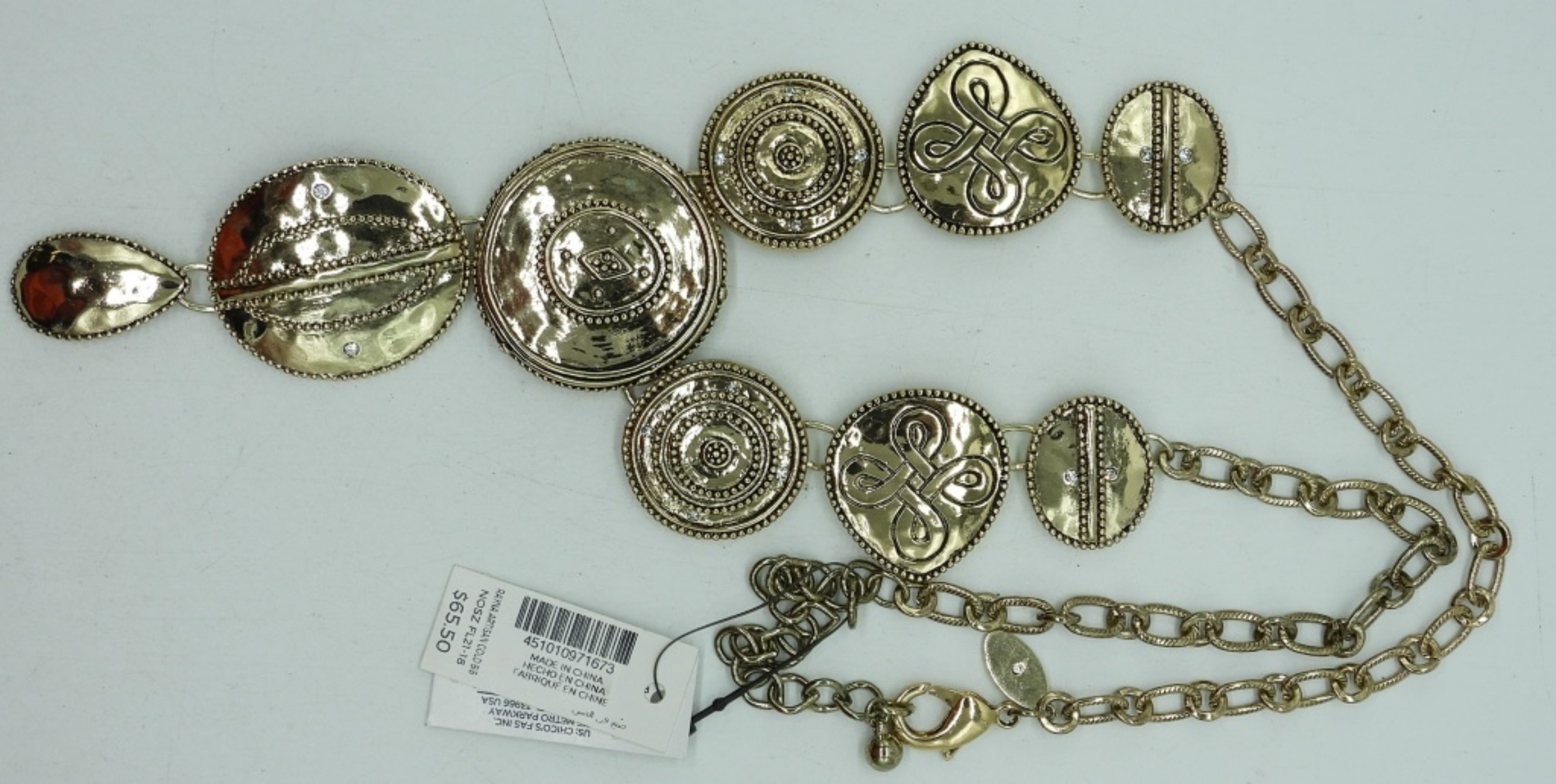 BRAND NEW WITH TAG GOLD TONE FASHION NECKLACE FROM CHICO’S RETAIL PRICE $65.50. 23″.