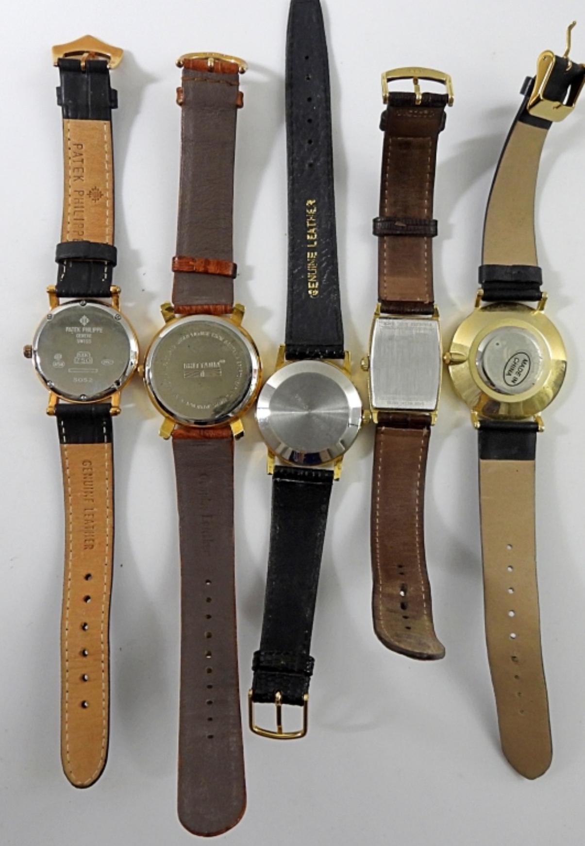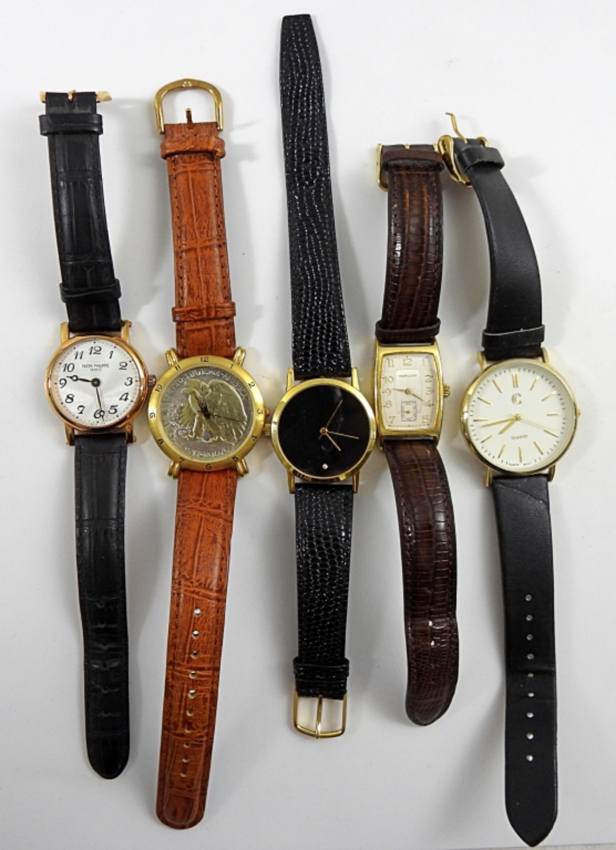 UNTESTED, BLACK AND BROWN LEATHER BANDS, BRITTANIA, HAMILTON, PATEK PHILPPE GENEVE