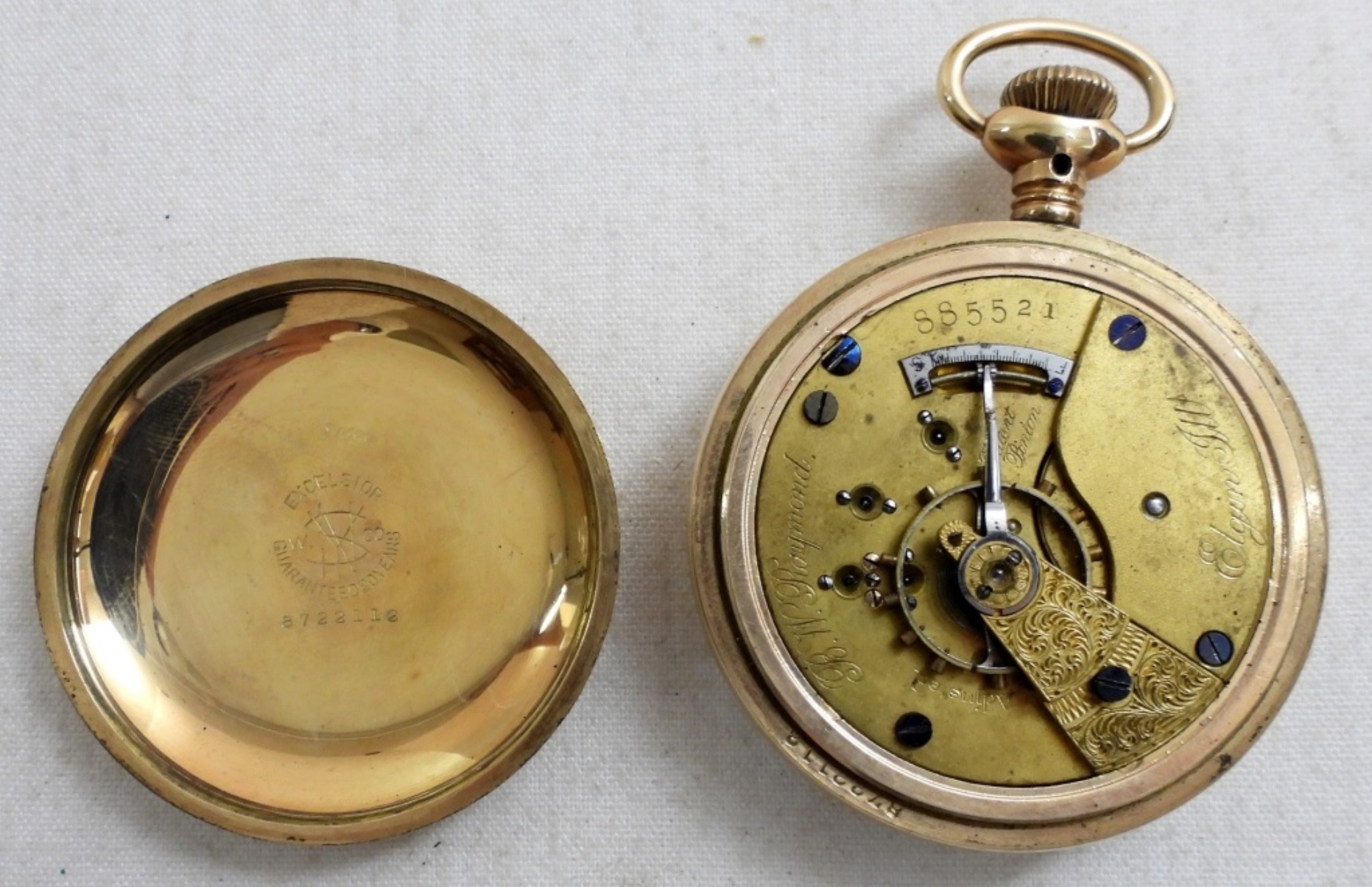 RUNNING CONDITION – NEEDS SERVICED – SERIAL #885521, B.W. RAYMOND, GRADE 70, CIRCA 1881, 18 size, 15j – PRETTY CASE