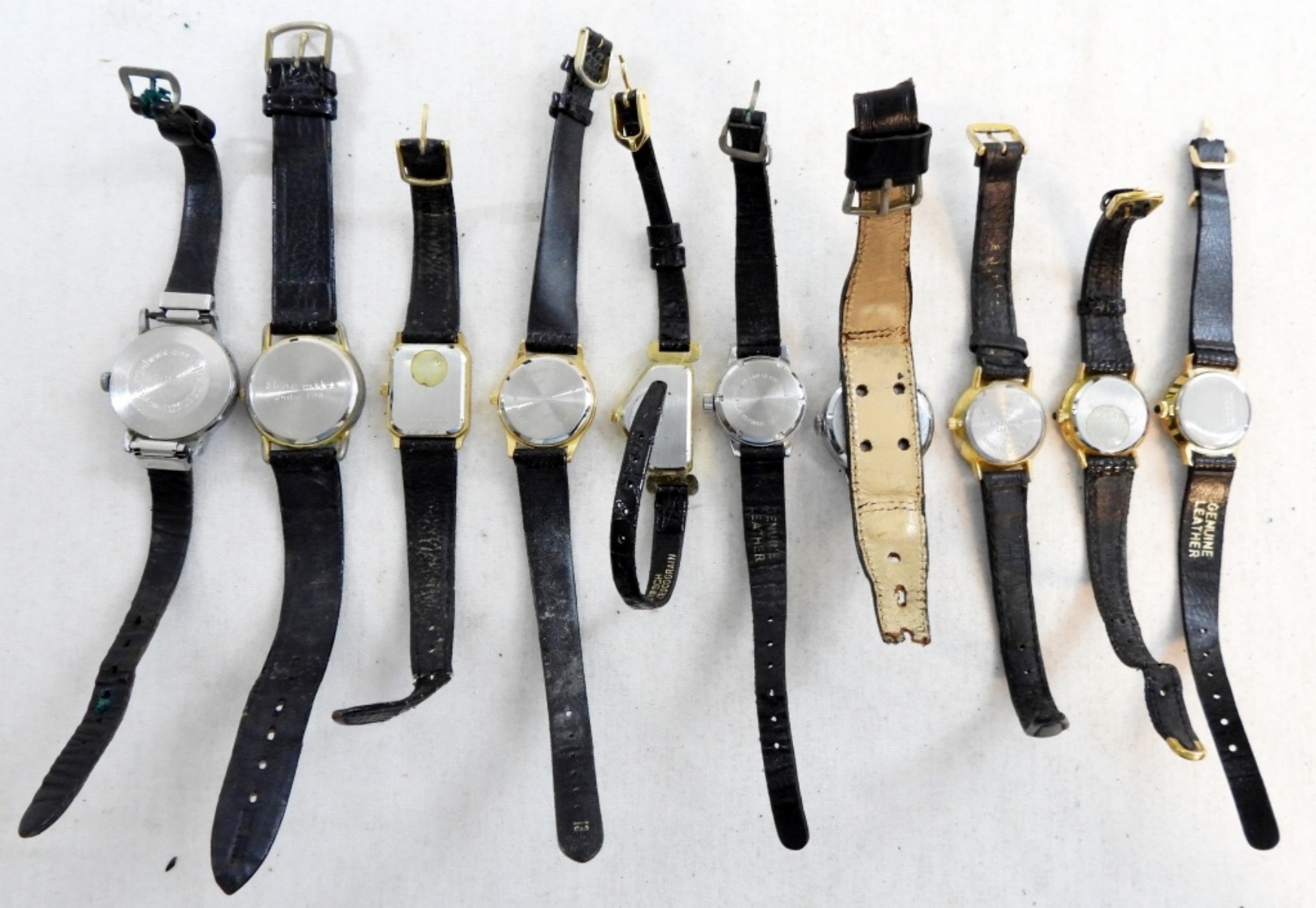 SKINNY BLACK LEATHER BANDS, UNTESTED, HELBROS,DUFONTE,TRIUMPH,OLEG CASSINI,BENRUS