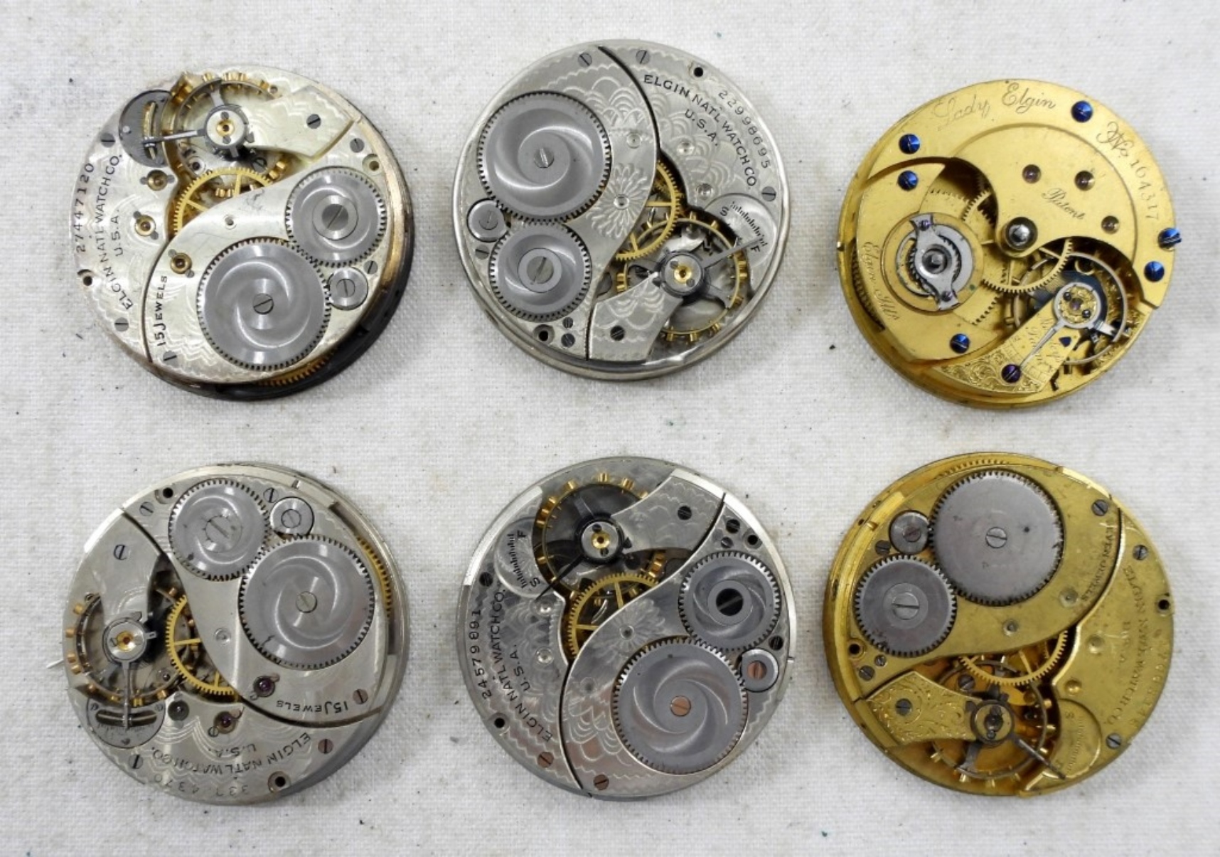 (6) ELGIN 12 SIZE POCKET WATCH MOVEMENTS , FOR PARTS AND REPAIR
