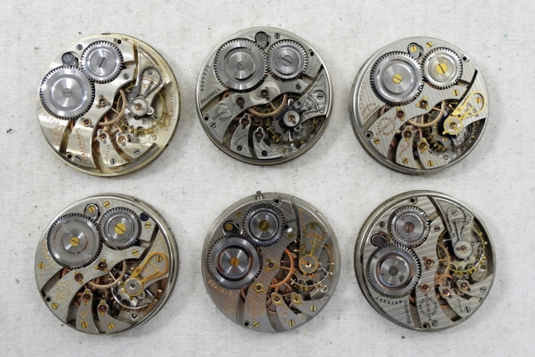 (6) ILLINOIS 12 SIZE POCKET WATCH MOVEMENTS, FOR PARTS AND REPAIR , ASSORTED STYLES
