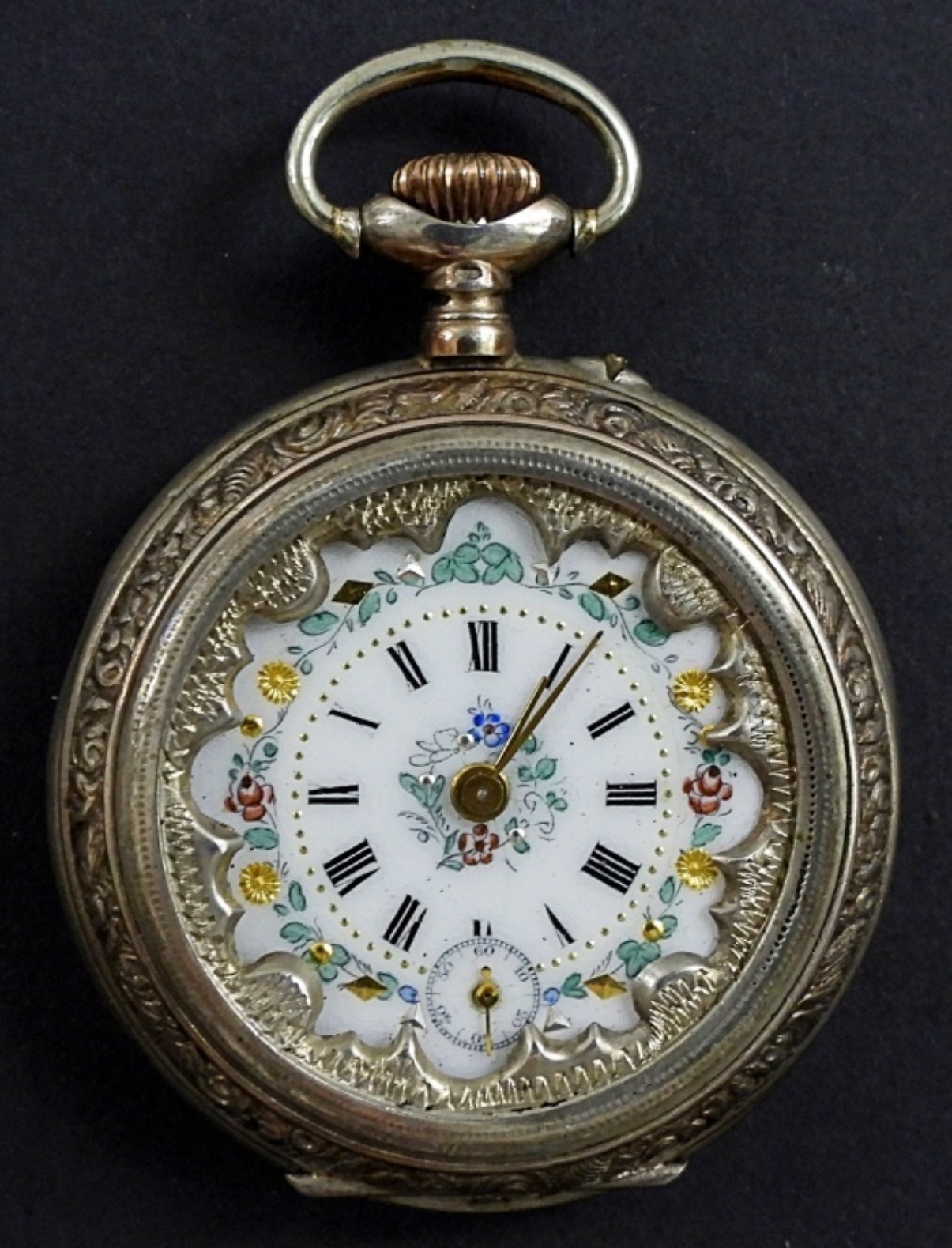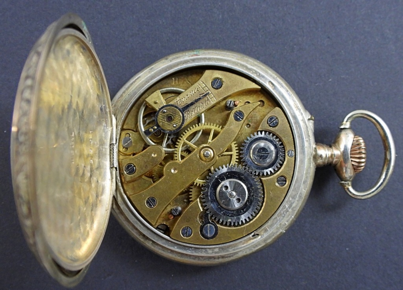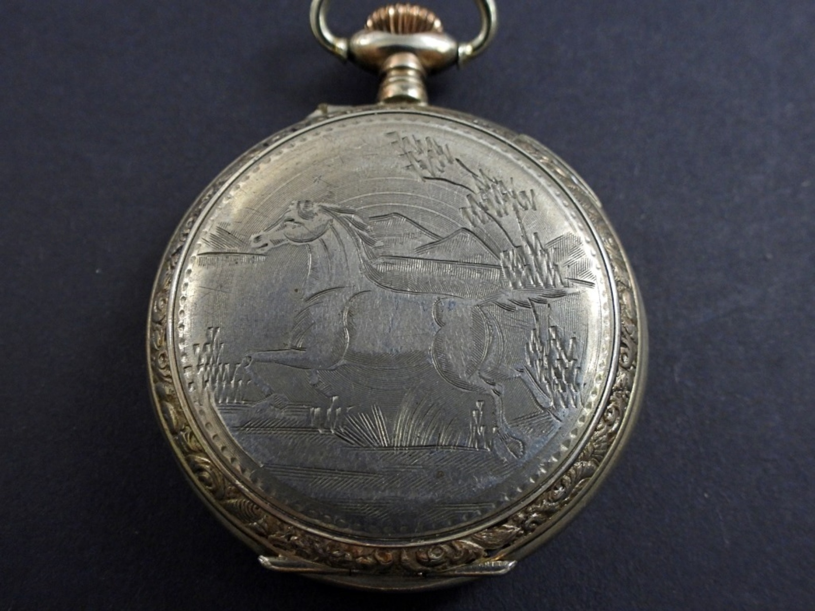missing CRYSTAL – NOT RUNNING – HORSE on BACK COVER, REMONTOIRE CYLINDRE 6 RUBIS 800 SILVER