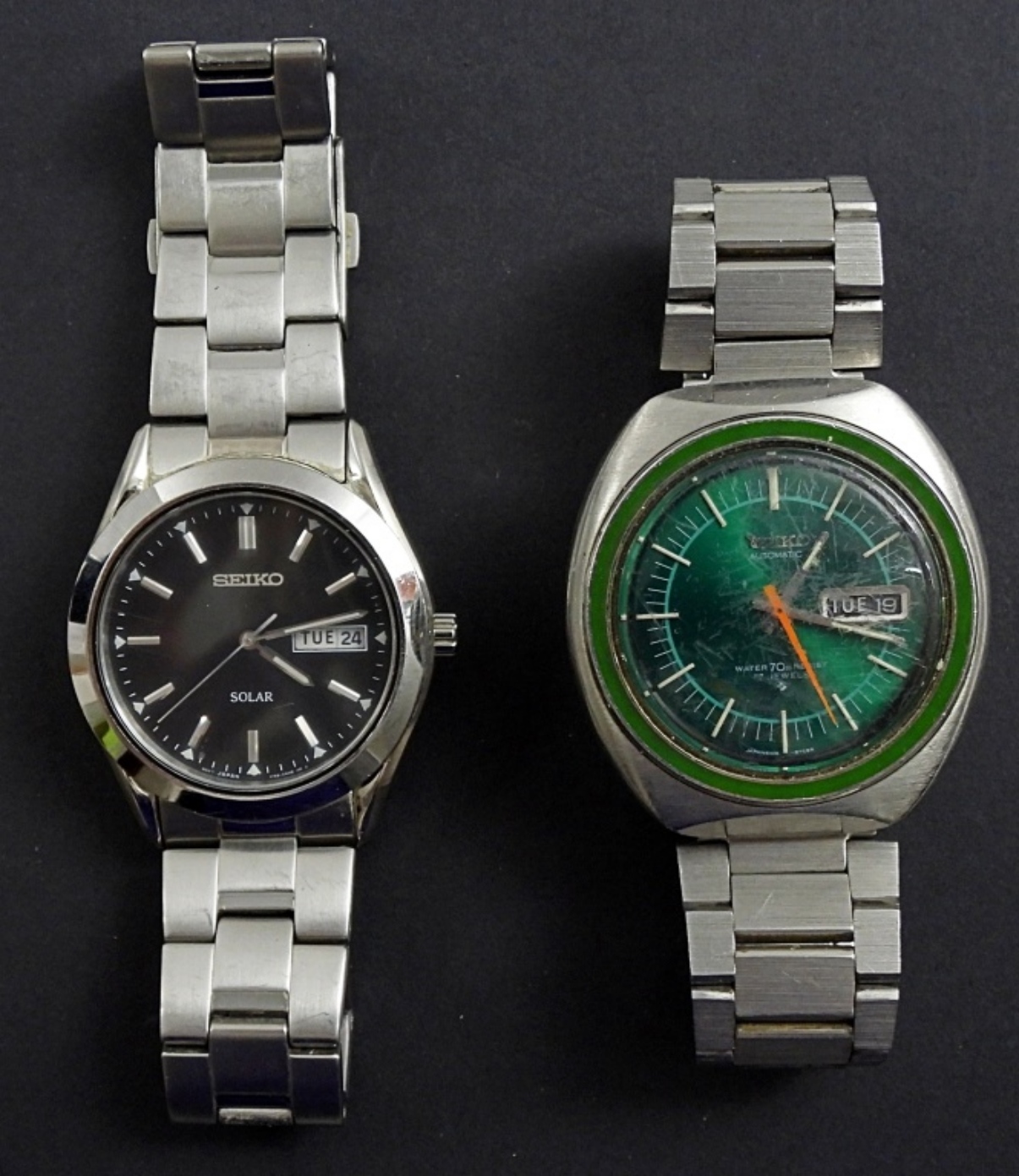 GREEN FACE needs crystal replaced & SEIKO SOLAR BLACK FACE not running – BOTH UNTESTED