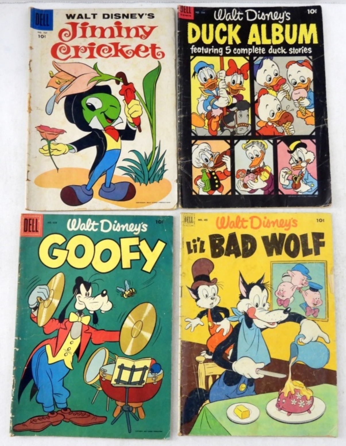 1 GOOFY NO. 658 1955, 1 LIL BAD WOLF NO. 403 1952, 1 JIMINY CRICKET NO701 1956, DUCK ALBUM NO586 1954