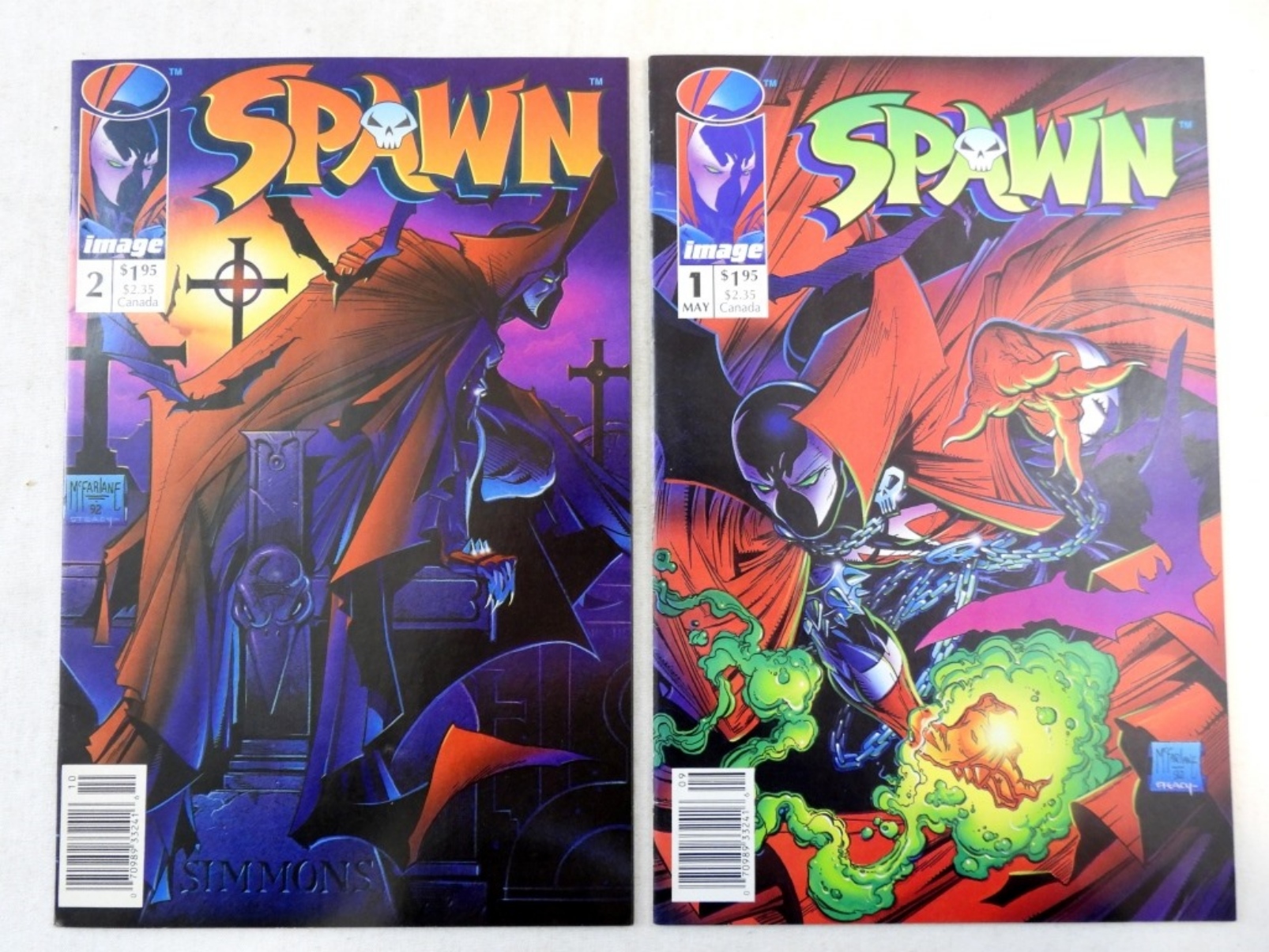 MAY, 1ST #1, 1ST APPEARANCE OF SPAWN, SAM & TWITCH,MALEBOLGIA, #2 1ST APPEARANCE OF CLOWN AKA VIOLATOR A DEMON, VERY FINE CONDITION