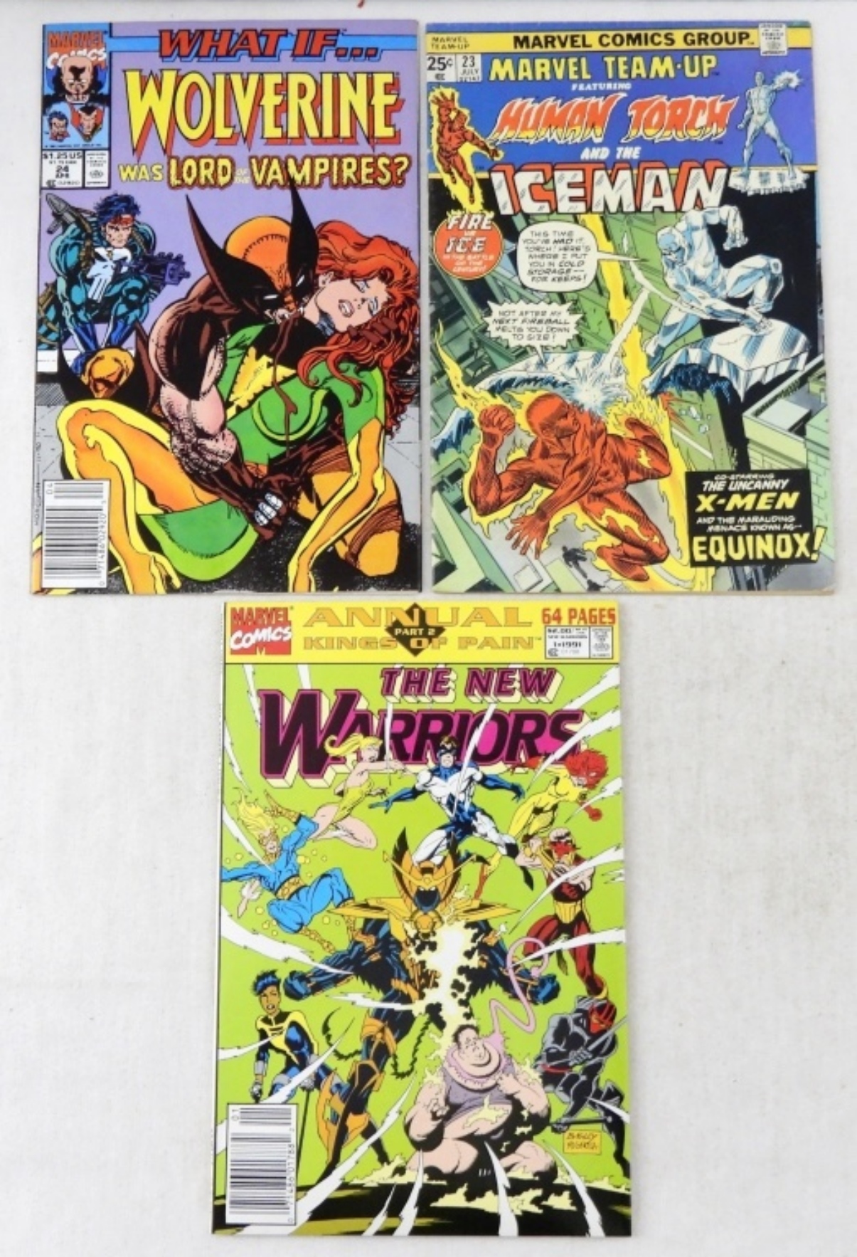 THE NEW WARRIOR 1991, JULY 23 HUMAN TORCH AND THE ICEMAN, APR 24 WOLVERINE, WHAT IF WOLVERINE WAS LORD OF THE VAMPIRES, FINE OR BETTER CONDITION