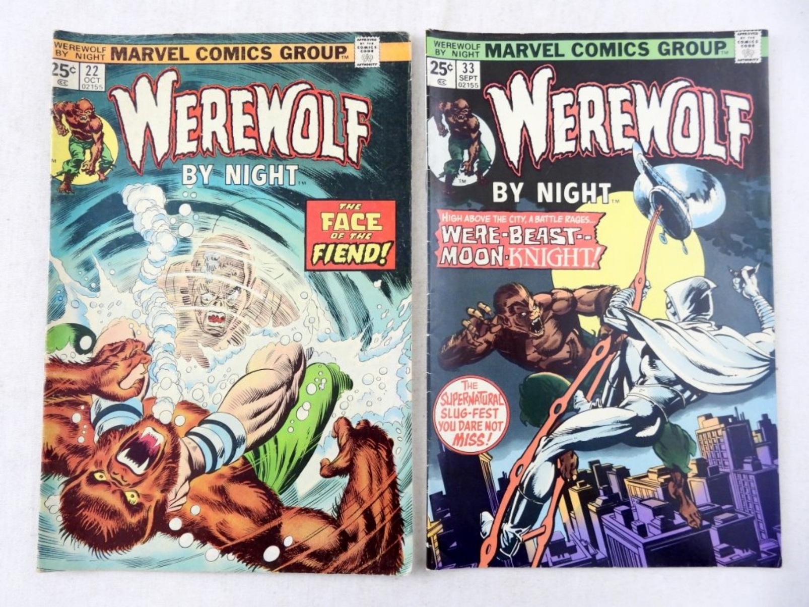 (2) BRONZE MARVEL WEREWOLF BY NIGHT, # 22 GIL KANE COVER, JACK RUSSELL, & #33 GIL KANE , 2ND APPEARANCE OF MOON KNIGHT(VG/VG+)