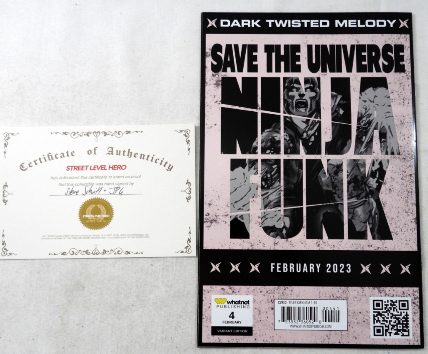2023 NINJA FUNK #4 INCENTIVE HOMAGE COVER TYLER KIRKHAM, AUTOGRAPHED BY STEVE SCHUITT& JPC WITH COA FROM STREET LEVEL HERO(VF)