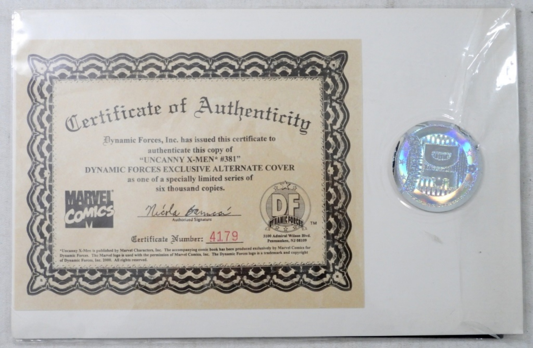 MODERN MARVEL THE UNCANNY X-MEN #381 WITH COA DYNAMIC FORCES EXCLUSIVE ALTERNATE COVER #4179/6000