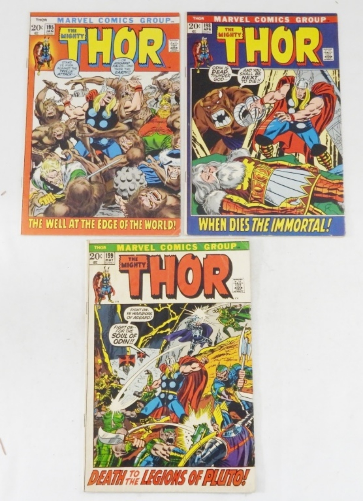 (3) BRONZE MARVEL THE MIGHTY THOR#195,198 ODIN DEAD,199 DEATH TO THE LEGIONS OF PLUTO(VG-VG+)