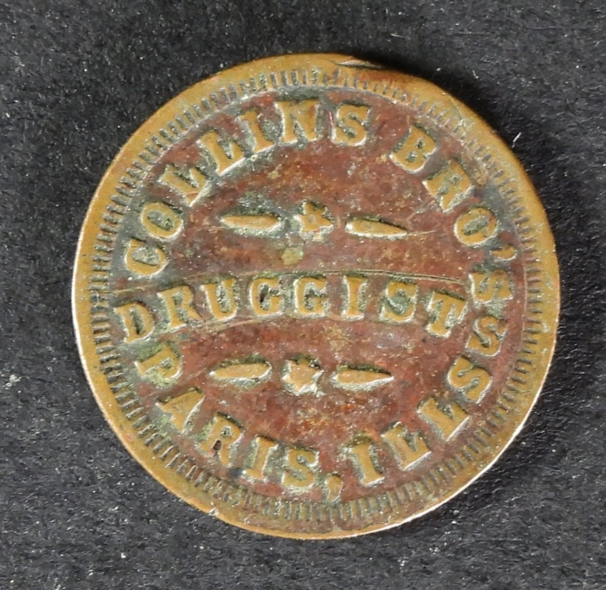 COLLINS BRO’S DRUGGIST PARIS,ILLS CIVIL WAR TOKEN