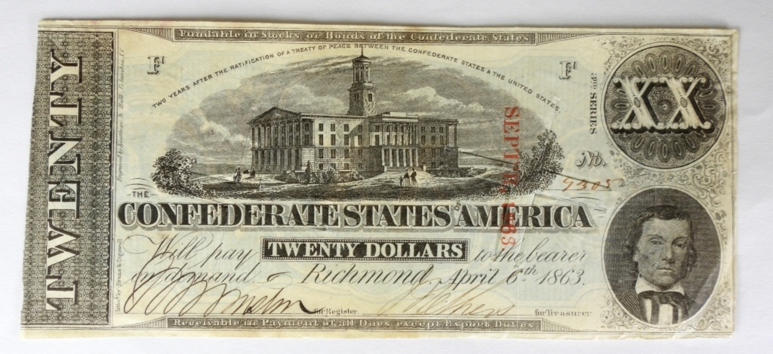 1863 $20 CONFEDERATE STATES OF AMERICA