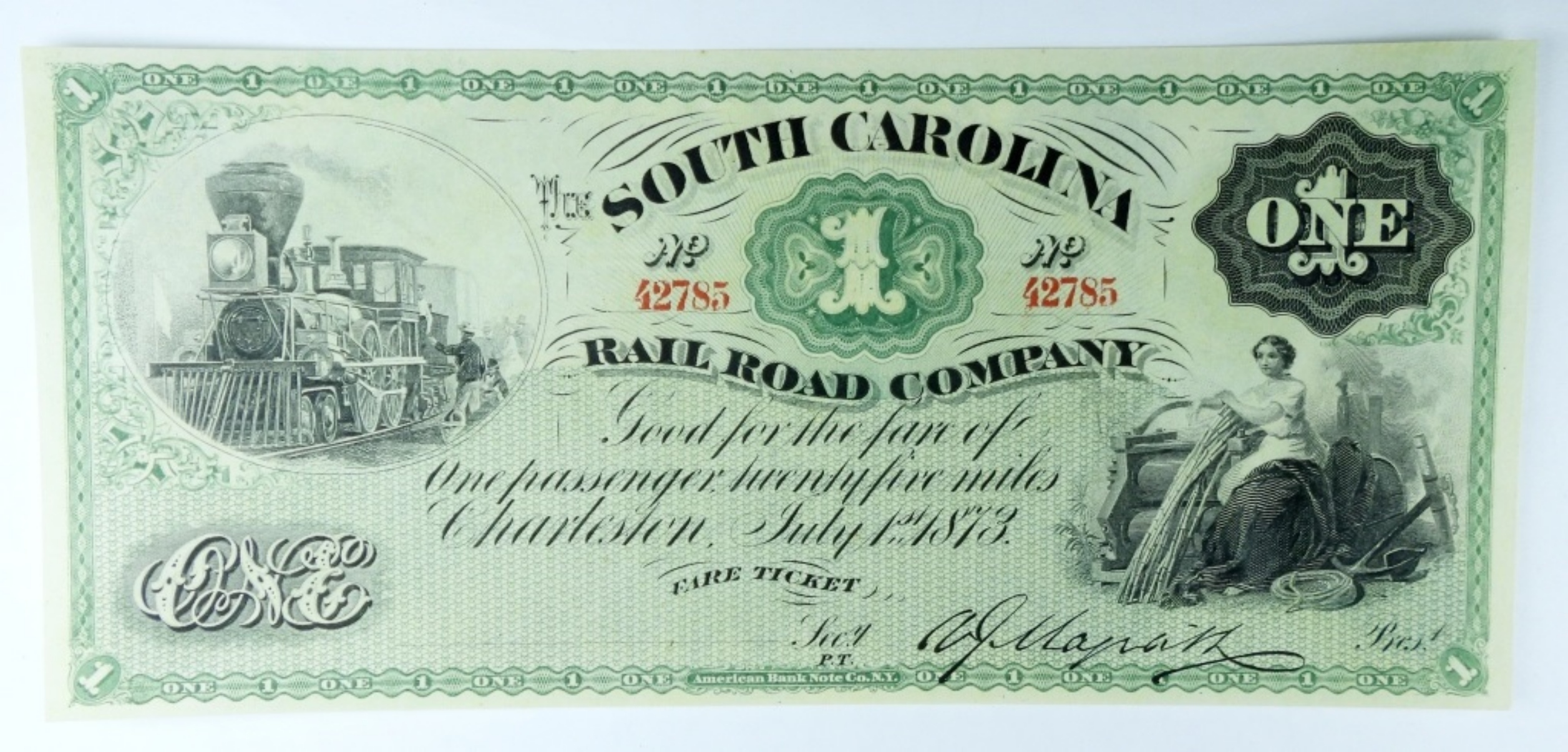 $1 SOUTH CAROLINA RAIL ROAD COMPANY OBSOLETE NOTE