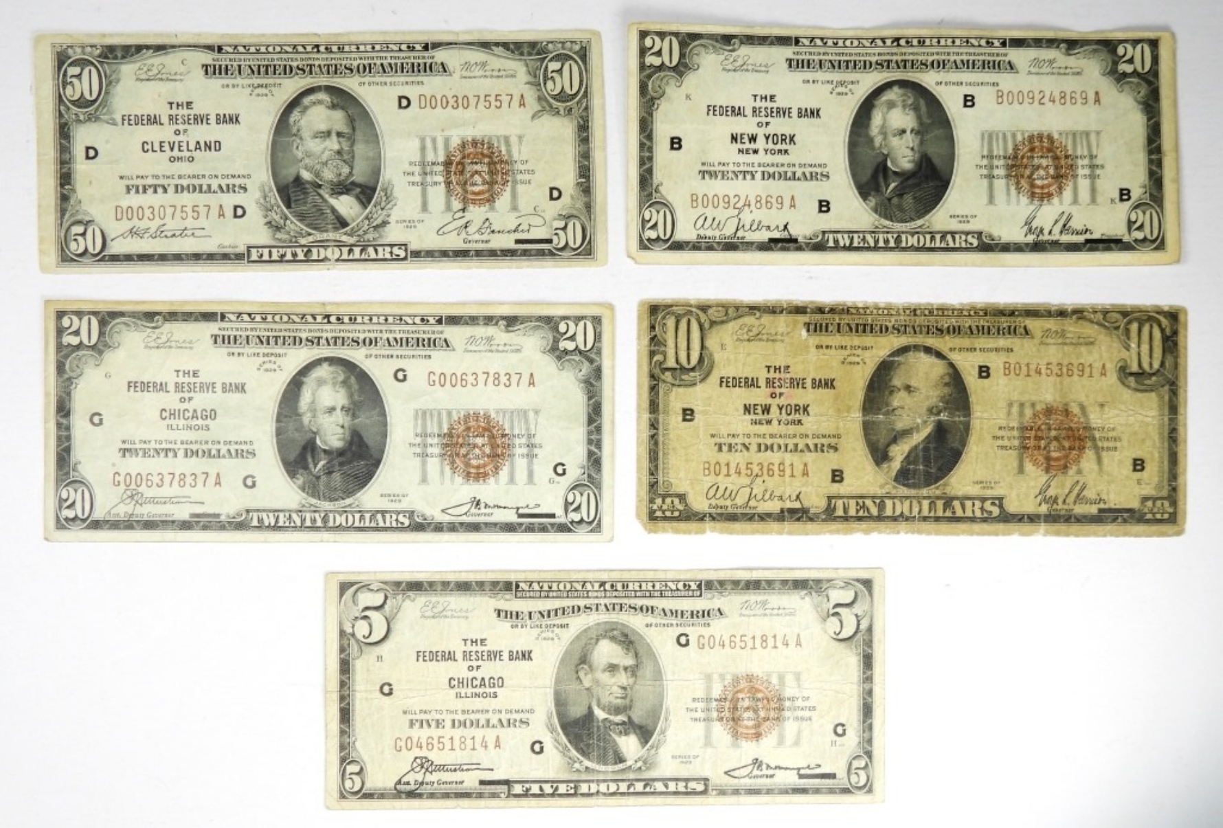 (5) notes – ALL DIFFERENT – SEE PICTURES FOR DETAILS