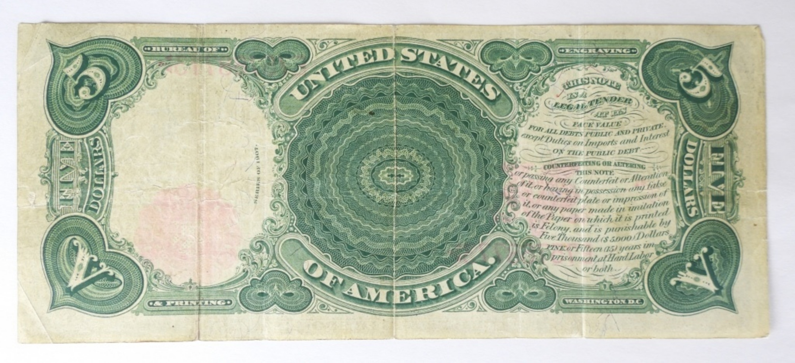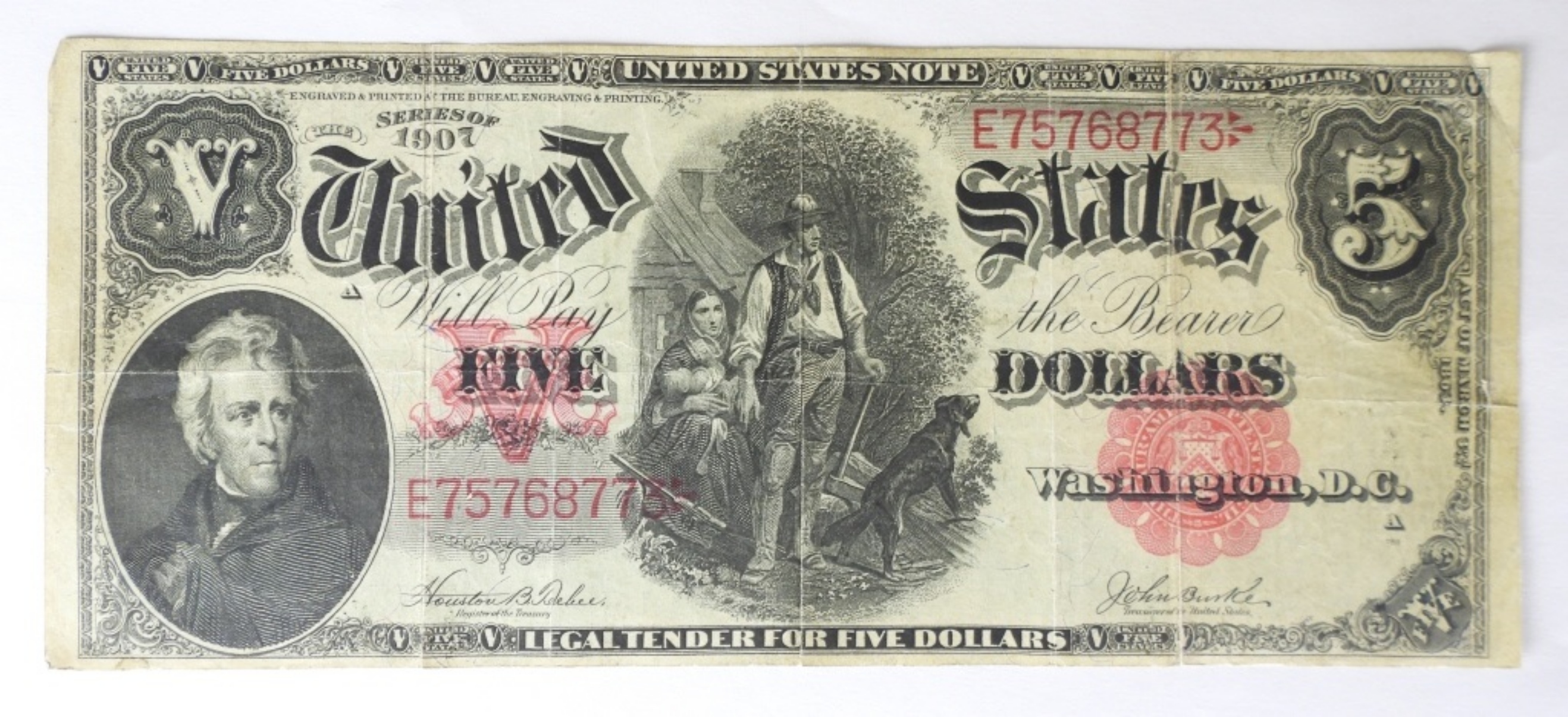1907 $5 “WOOD CHOPPER” UNITED STATES NOTE