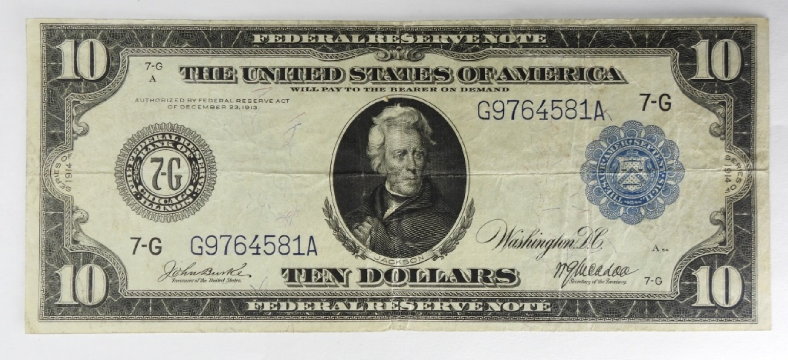 1914 $10 FEDERAL RESERVE NOTE” CHICAGO”