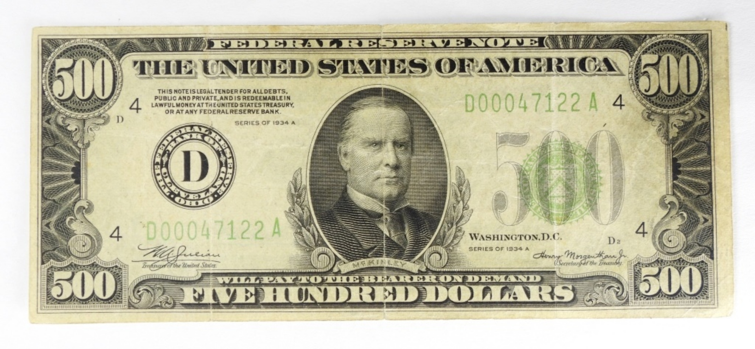 1934 A $ 500 FEDERAL RESERVE NOTE