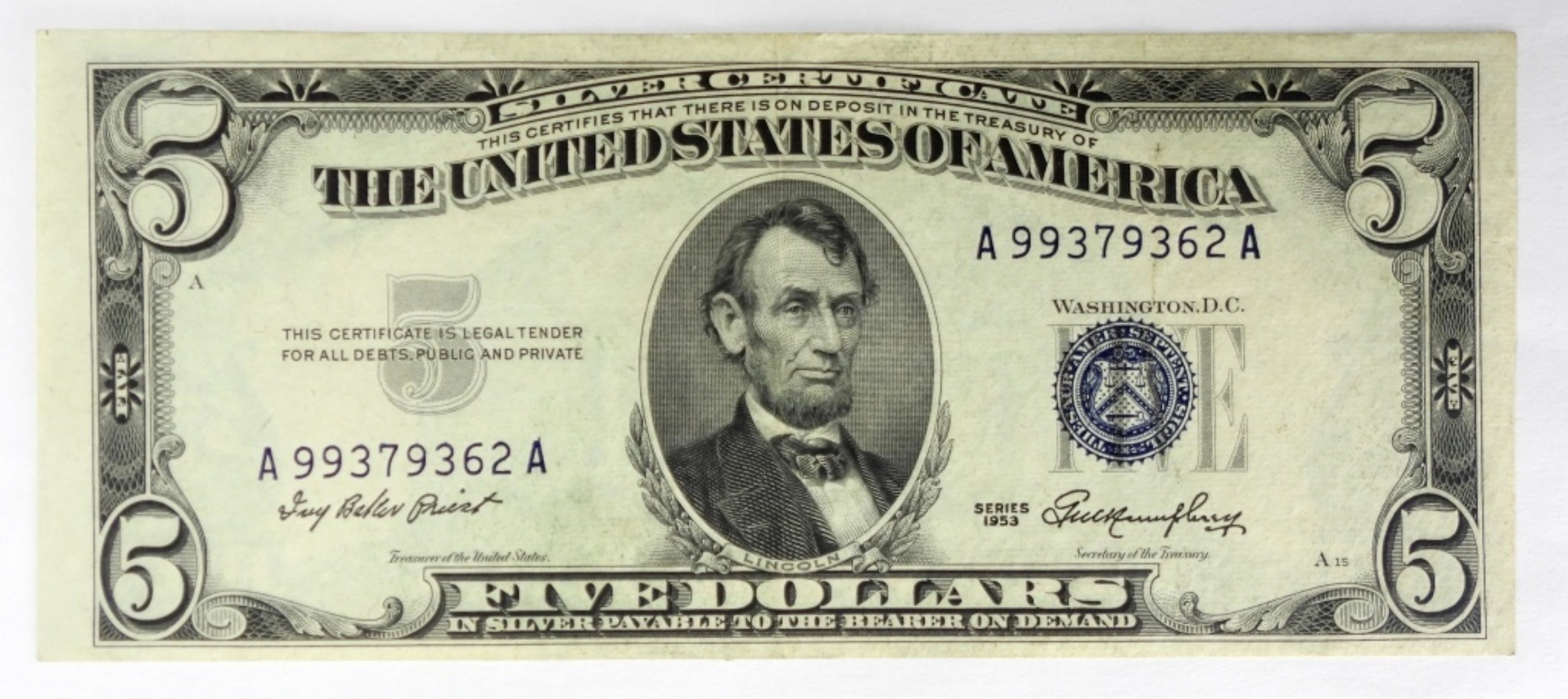 1953 $ 5 SILVER CERTIFICATE ( PRINT ERROR)