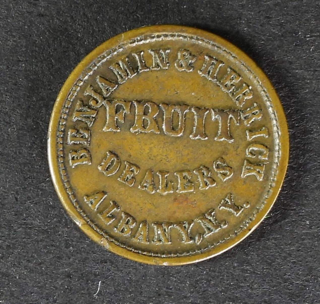 1863 BENJAMINE & HERRICK FRUIT DEALERS , ALBANY,NY CIVIL WAR TOKEN