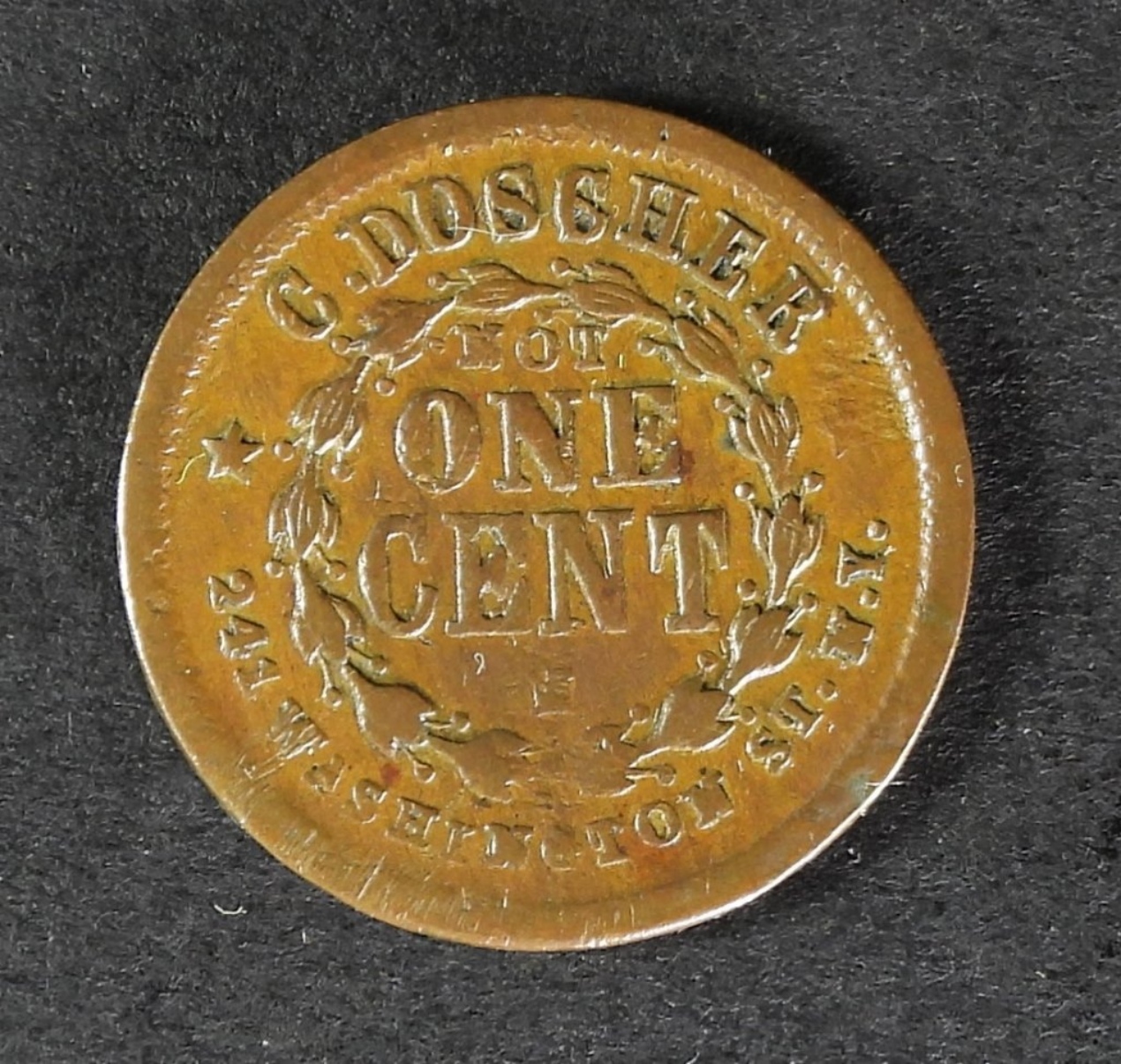 1863 C.DOSSHER ONE CENT ,NY CIVIL WAR TOKEN
