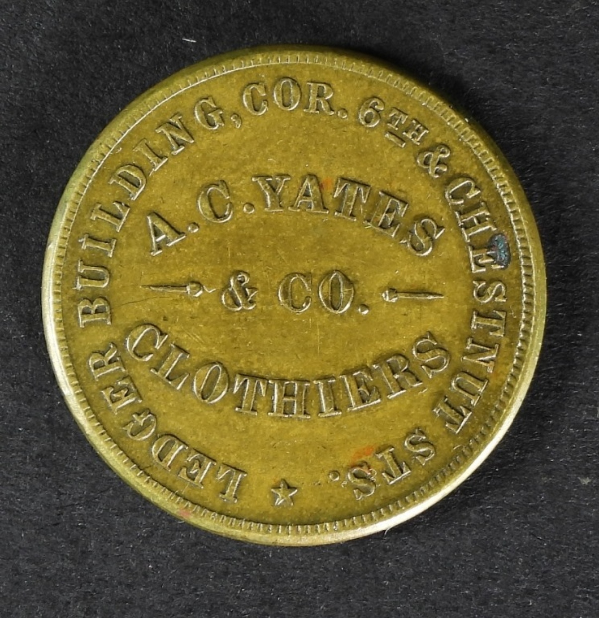 A.C. YATES CO CLOTHERS,PHILADELPHIA CIVIL WAR TOKEN