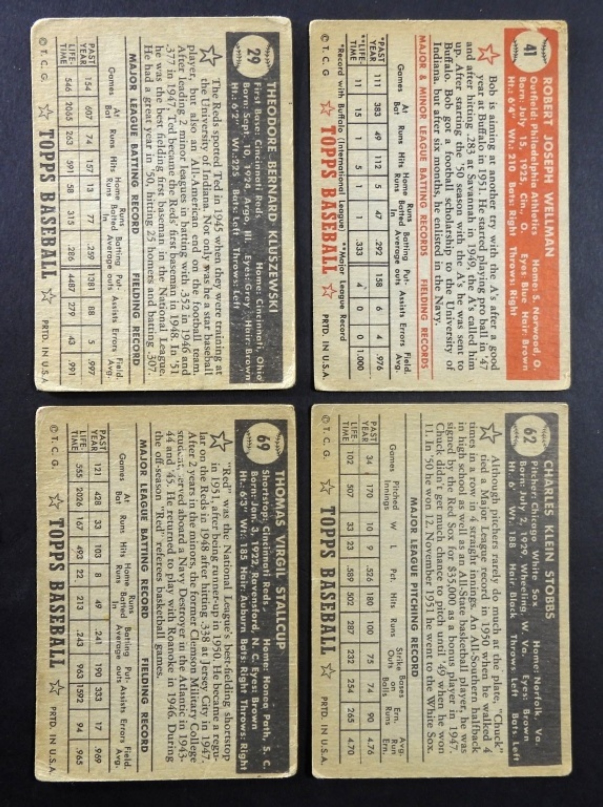 #29 KLUSZEWSKI VG BLACK BACK, #41 RED BACK, #62 & #69 BLACK BACKS – VGs