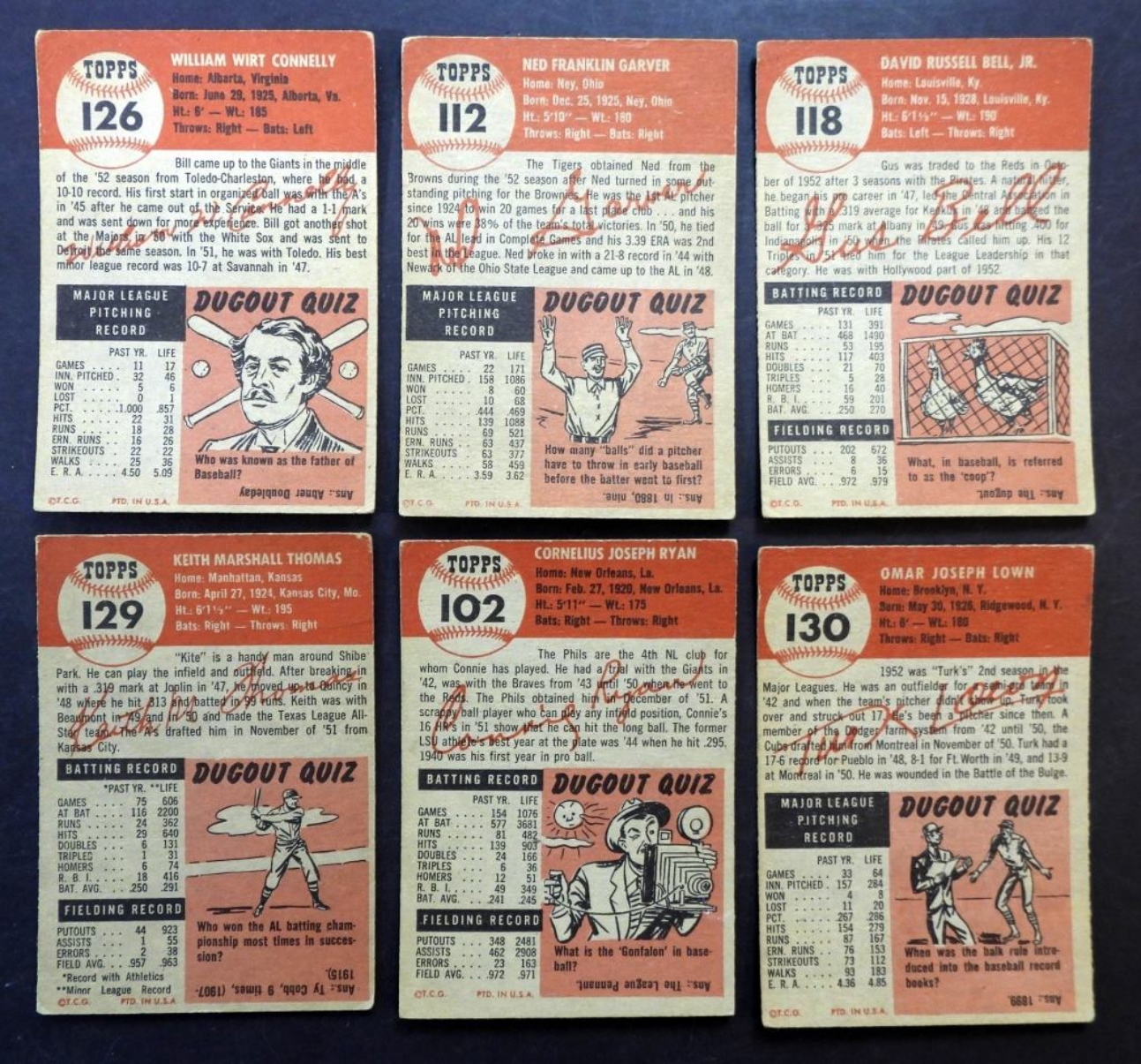 #102, 112, 118 GUS BELL, 126, 129, 130 – VG/VGEX