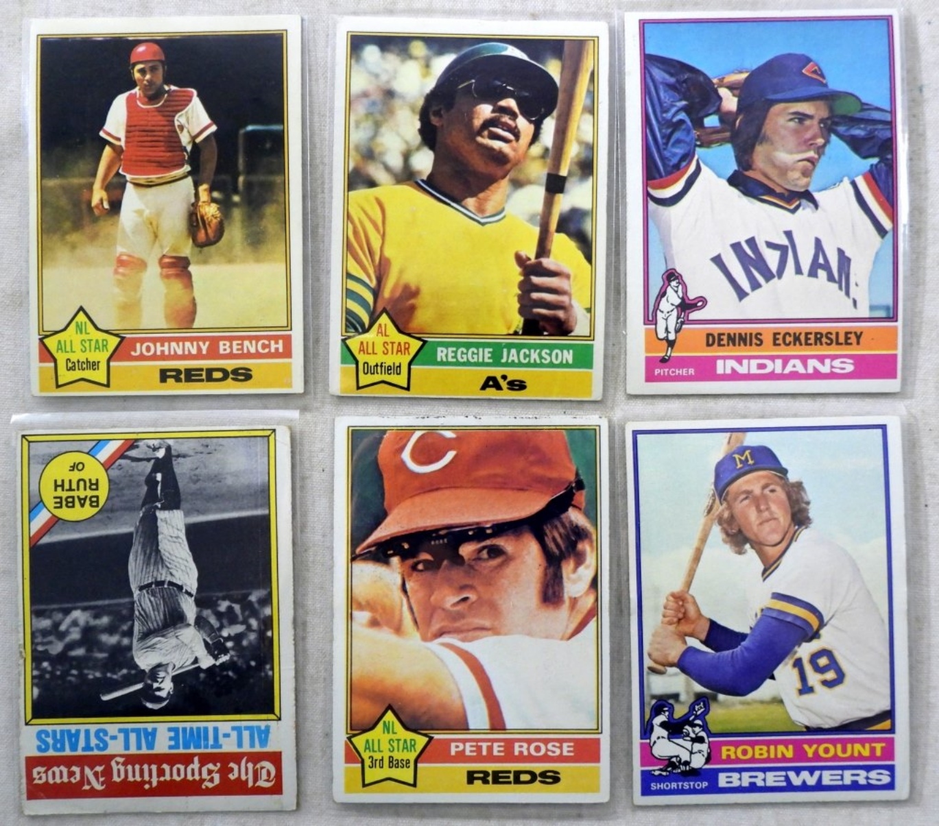 (365) 1976 TOPPS,#500 REGGIE JACKSON,#345 BABE RUTH ,#240 PETE ROSE & MORE. OVERALL EXCELLENT WITH A FEW LESSER