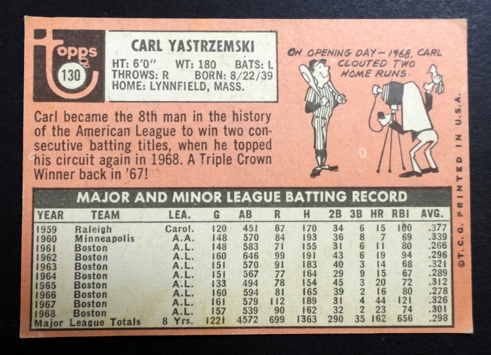 1969 TOPPS #130 CARL YASTRZEMSKI (VG)