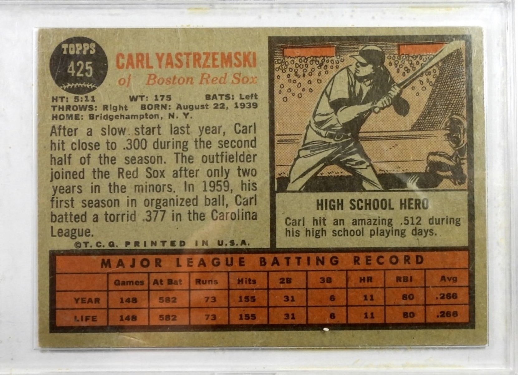 1962 TOPPS #425 CARL YASTRZEMSKI (VG+)