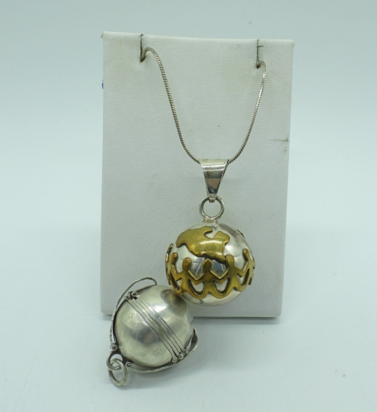 ONE MEDIUM SIZED MELODY BALL ON A 20″ STERLING CHAIN. STERLING MEXICO 925 PHOTO SPHERE LOCKET. 27.5 DWT