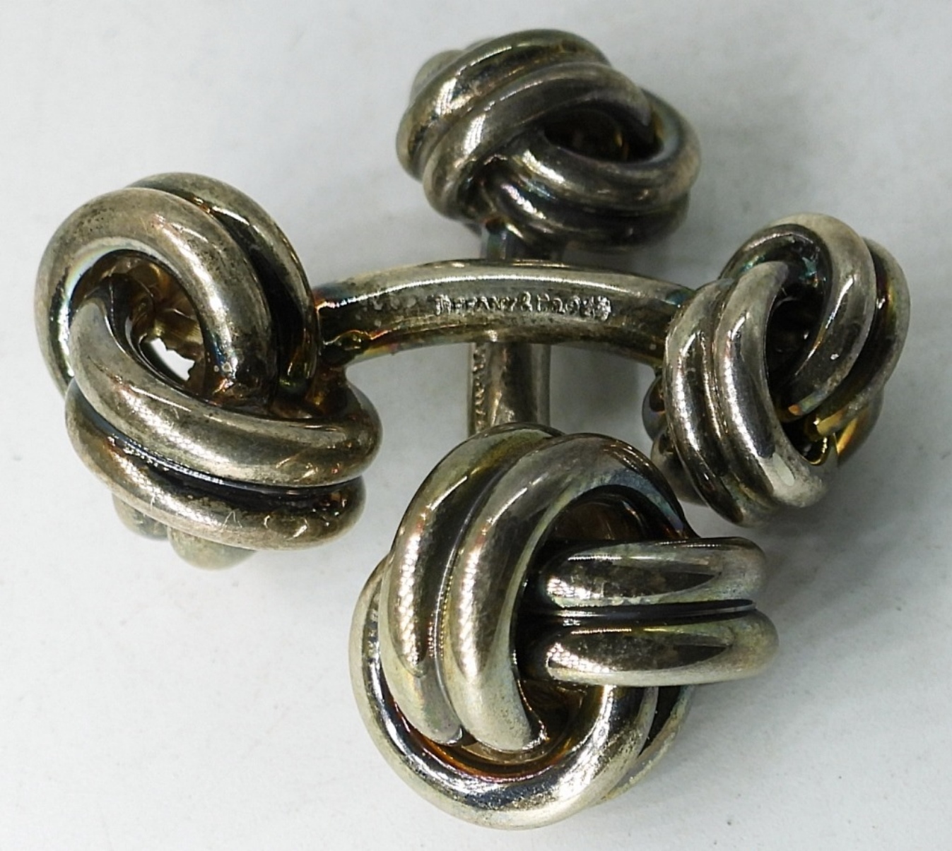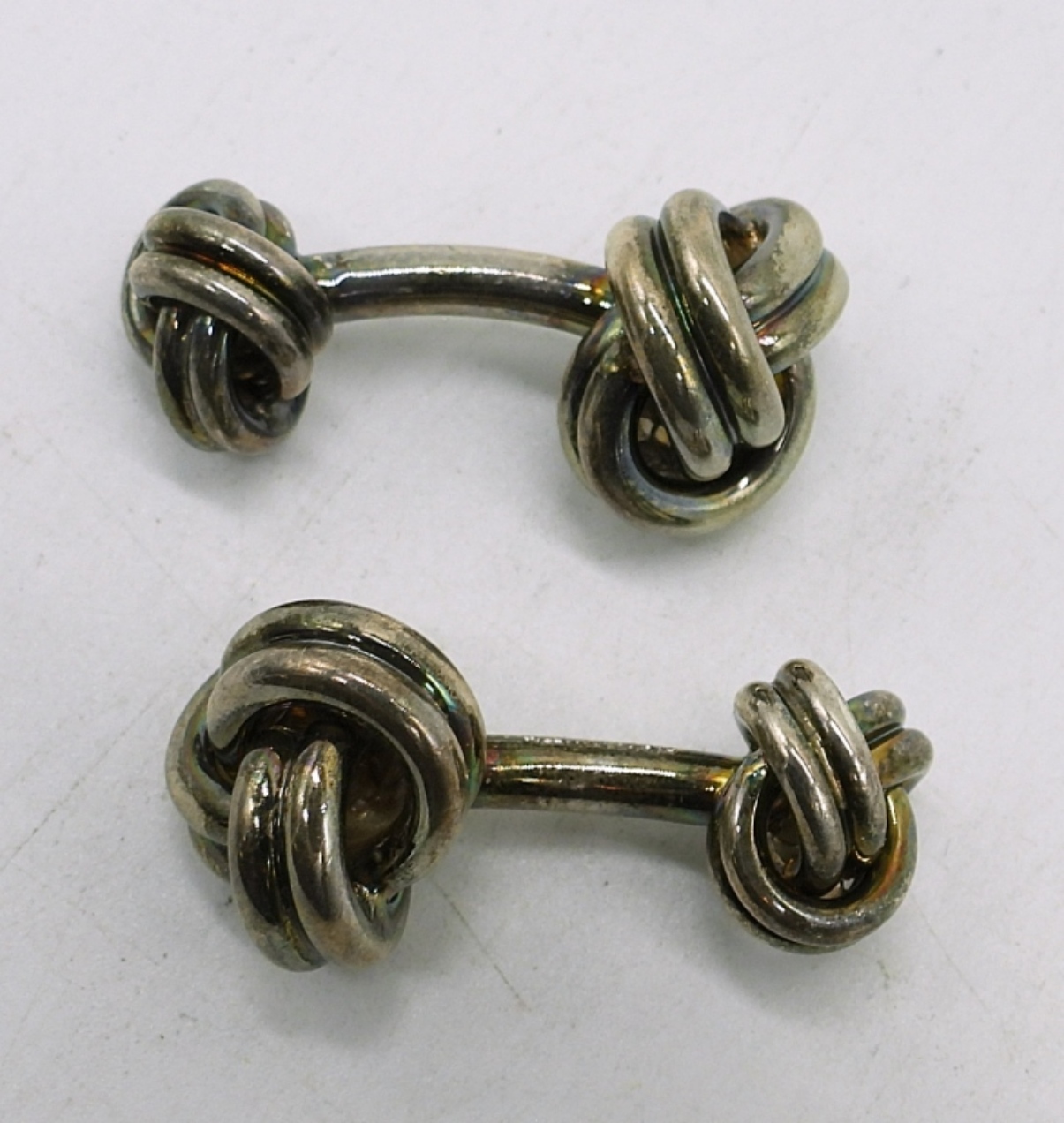 TIFFANY & CO, STERLING SILVER KNOTTED CUFF LINKS. 11.5 DWT