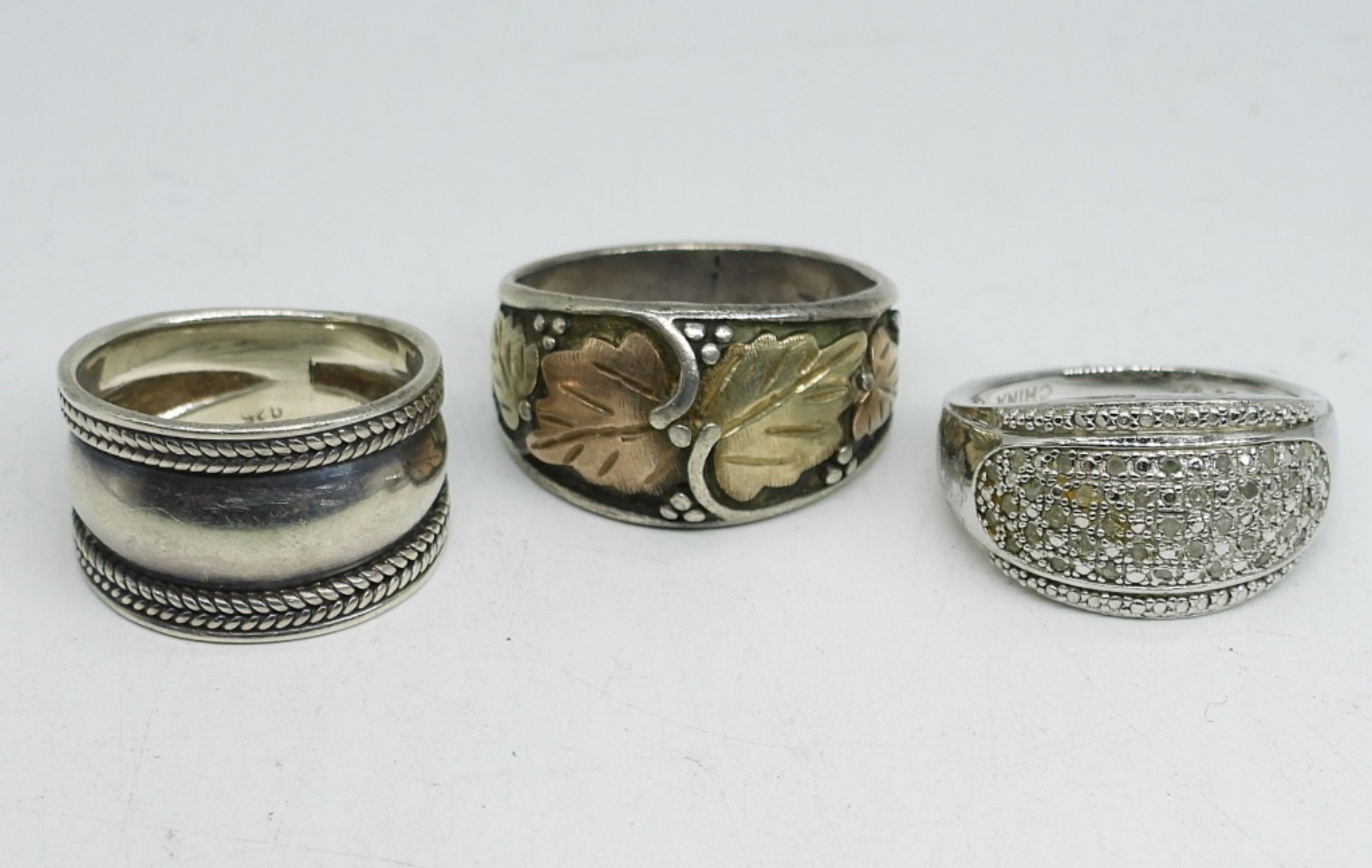 TWO TONE STERLING NECKLACE 24″ & BRACELET 7″. 3 STERLING RINGS, 8 & 10. 18.6 DWT