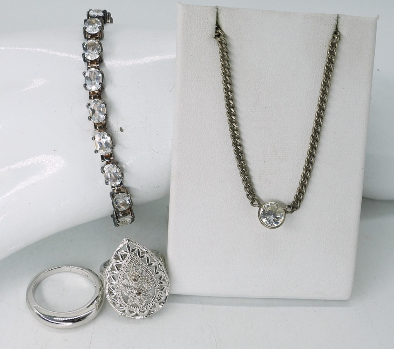 NECKLACE, 15″. BRACELET, 7″. TWO RINGS SIZES 7 & 9. 23.3 DWT