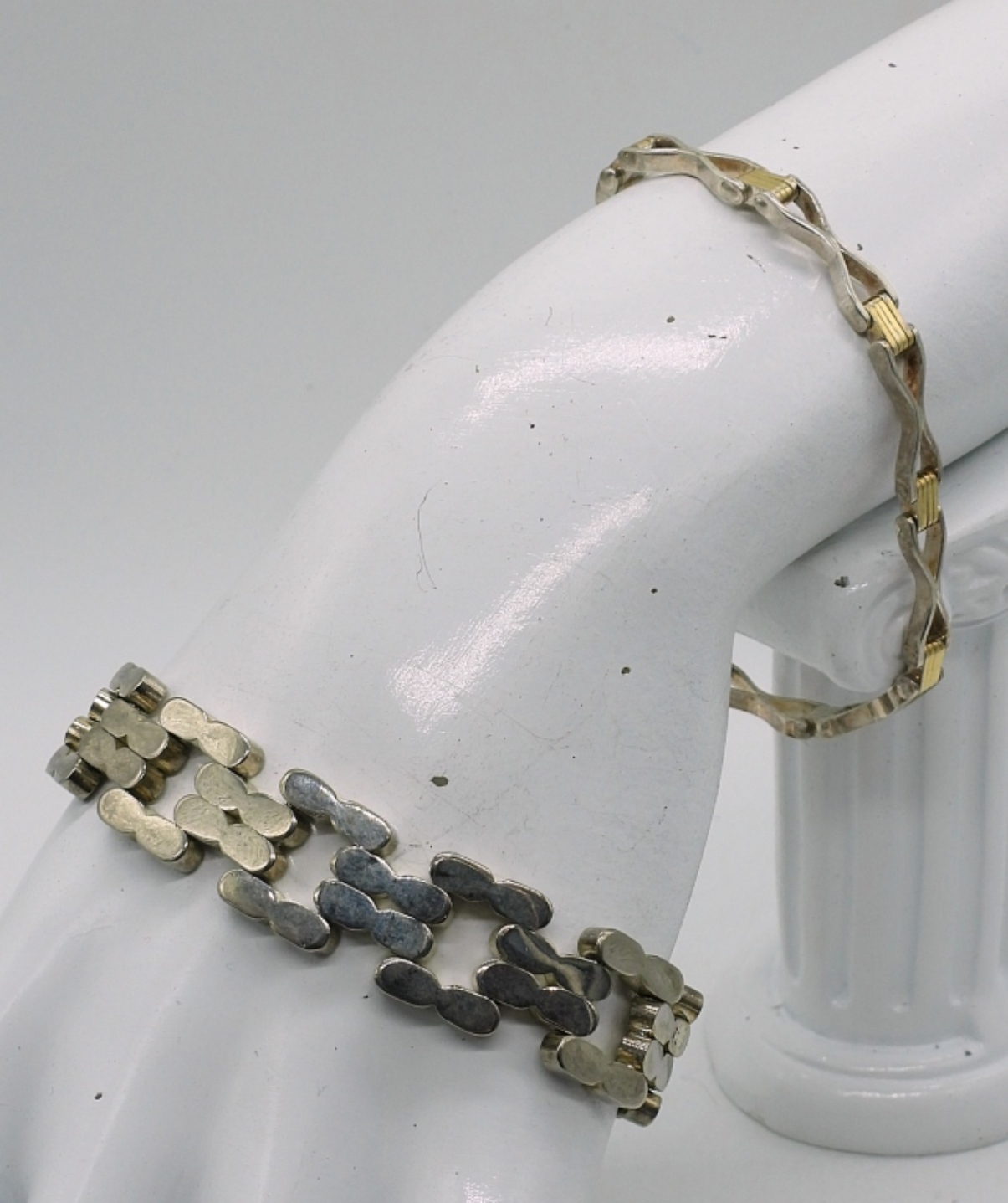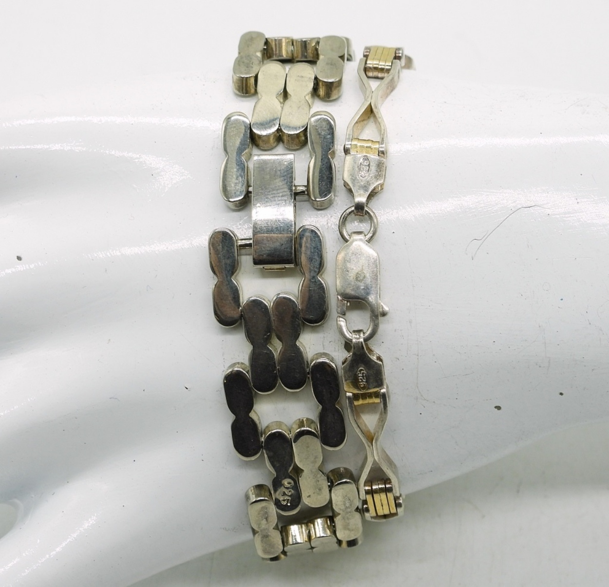 TWO STERLING BRACELETS, 7″. 35.1 DWT