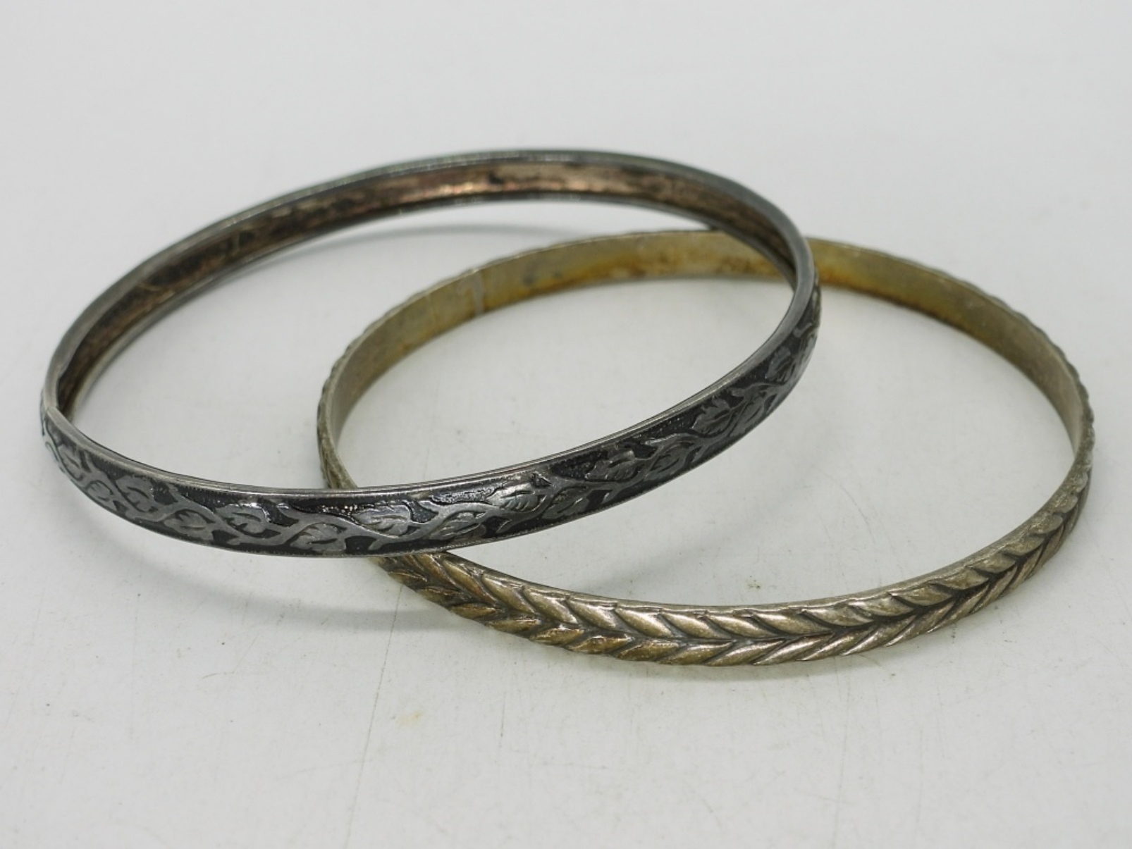 TWO STERLING VINTAGE BANGLE BRACELETS. 7-8″. 13 DWT